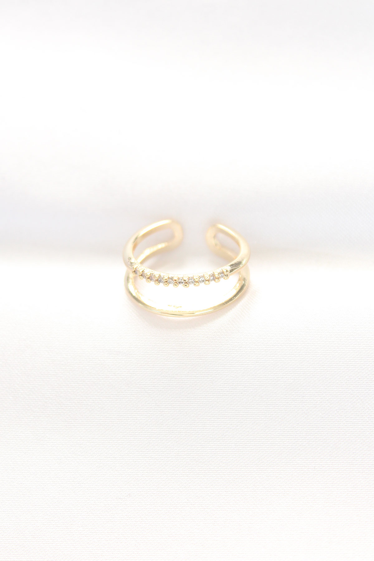 Tegan 2li Görünümlü Su Yolu Tasarımlı Gold Renk Ayarlanabilir Yüzük TG27BYK3136