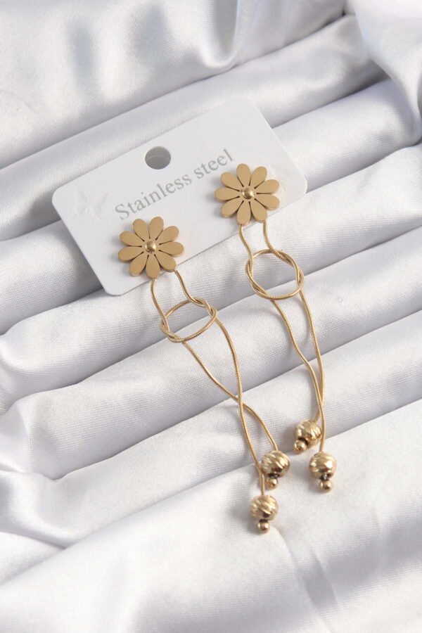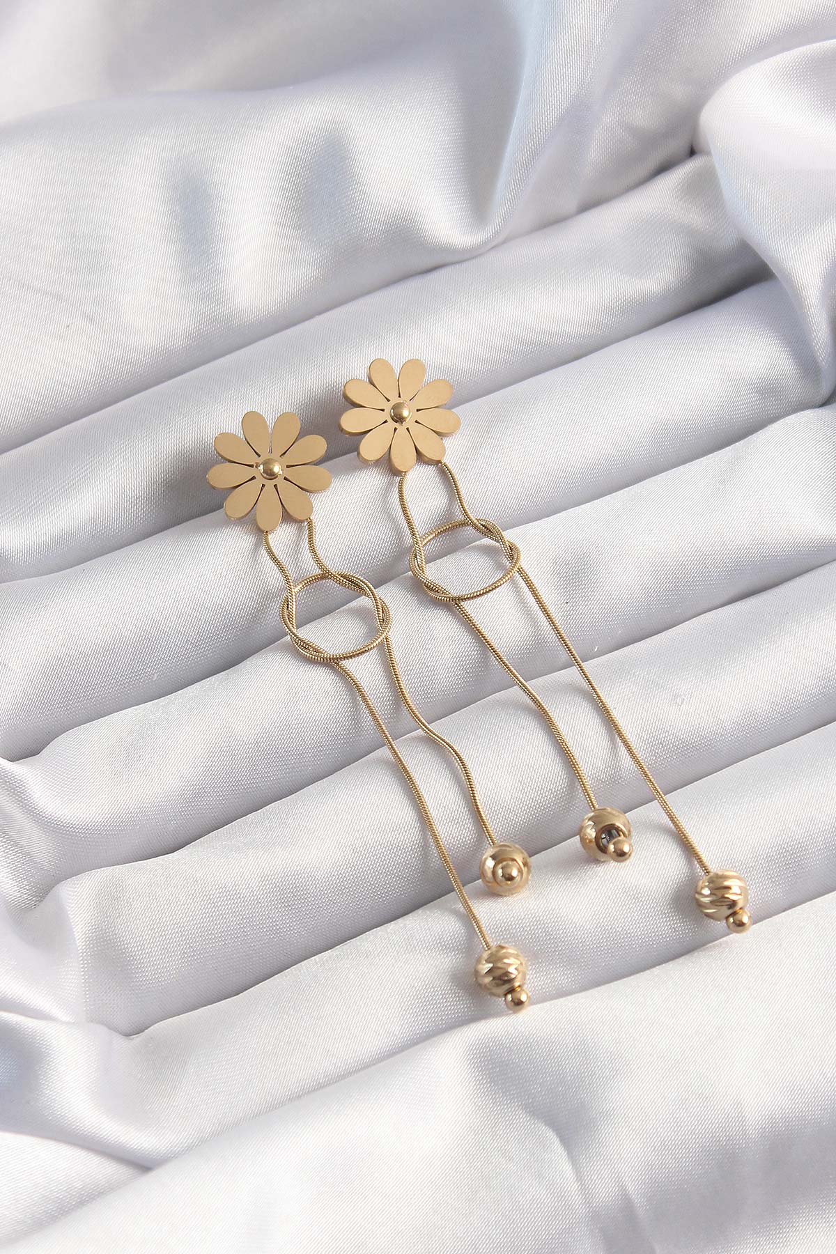 Tegan 316L Çelik Altın Renk Sallantılı Düğüm Model Papatya Küpe TG27BKP9497