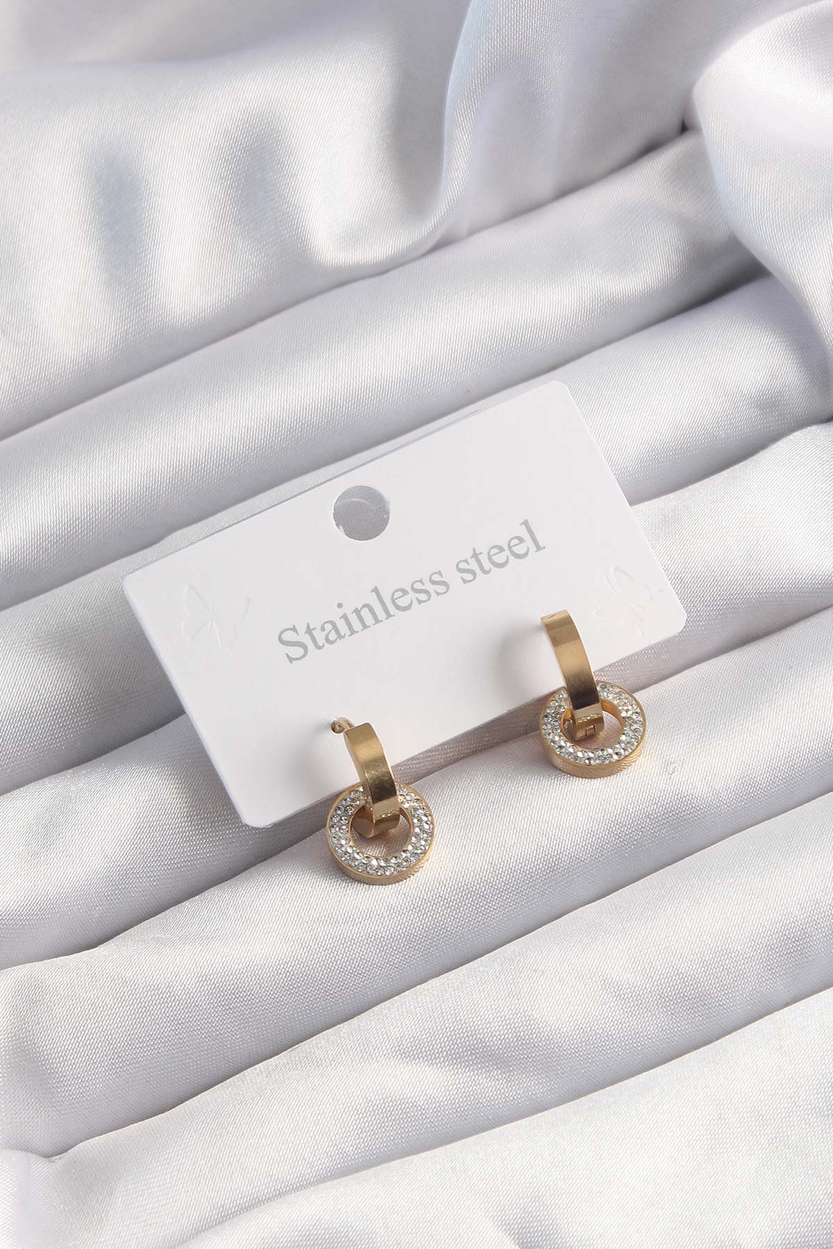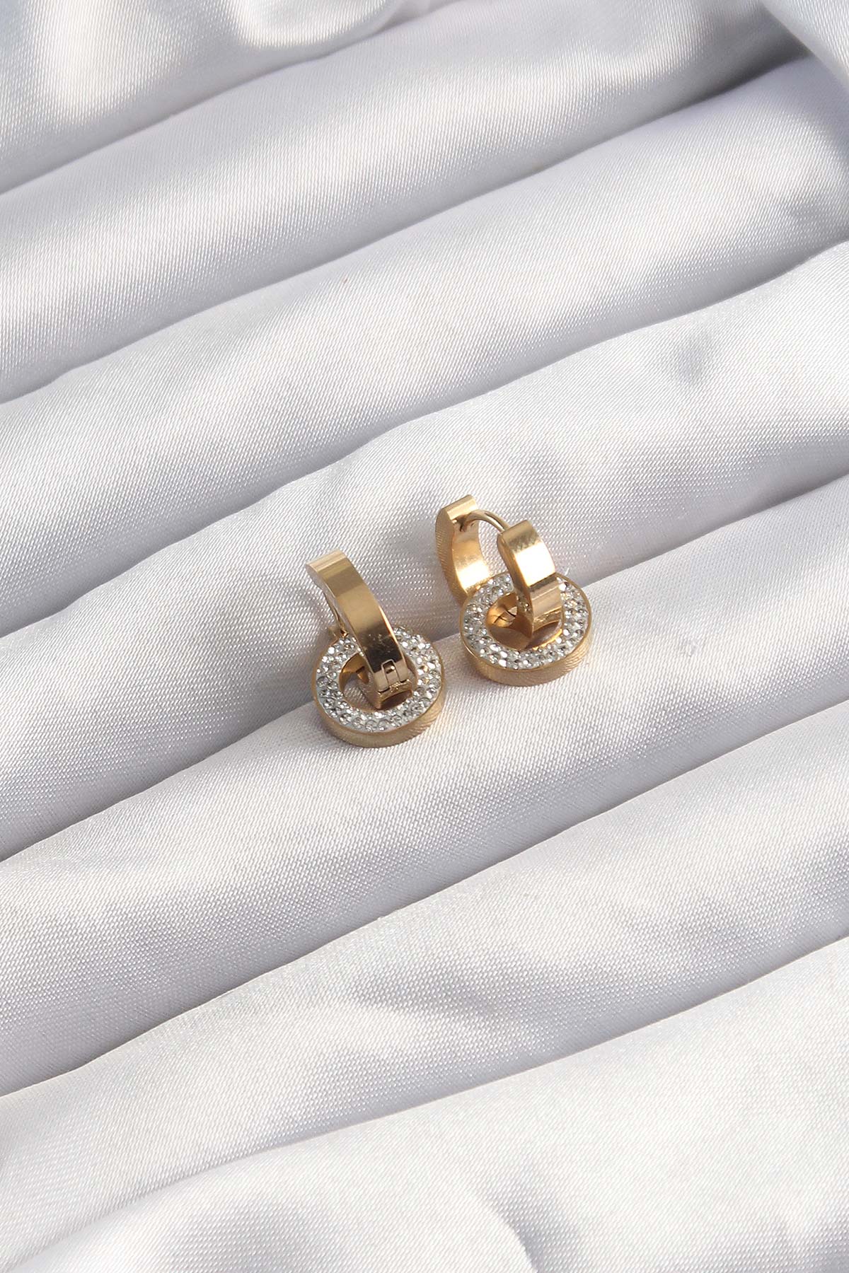 Tegan 316L Çelik Altın Renk Zirkon Taşlı Halka Model Küpe TG27BKP9499