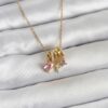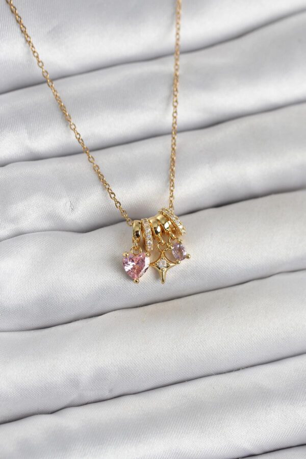 Tegan 316L Çelik Gold Pembe Zirkon Taşlı Charmlı Kadın Kolye TG27BKO11011