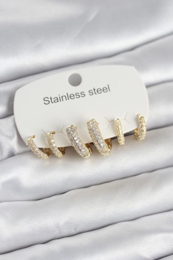 Tegan 316L Çelik Gold Renk 6’lı Set Zirkon Taşlı Halka Model Kadın Küpe TG27BKP11753