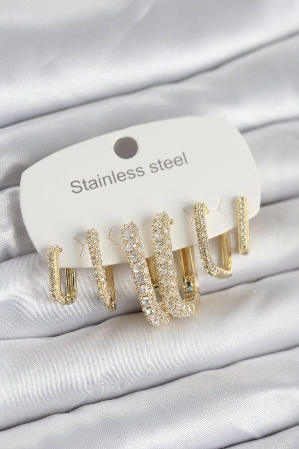 Tegan 316L Çelik Gold Renk 6’lı Set Zirkon Taşlı Kadın Küpe TG27BKP11746