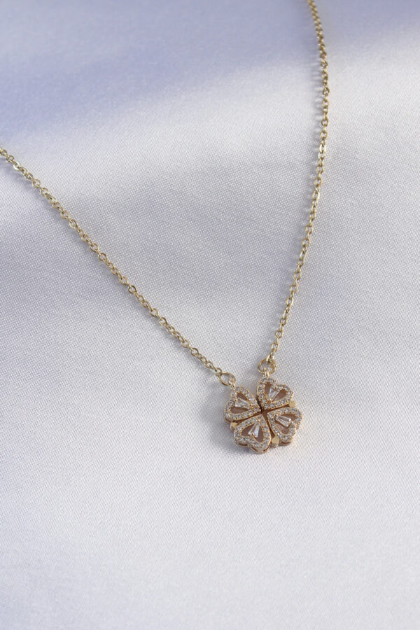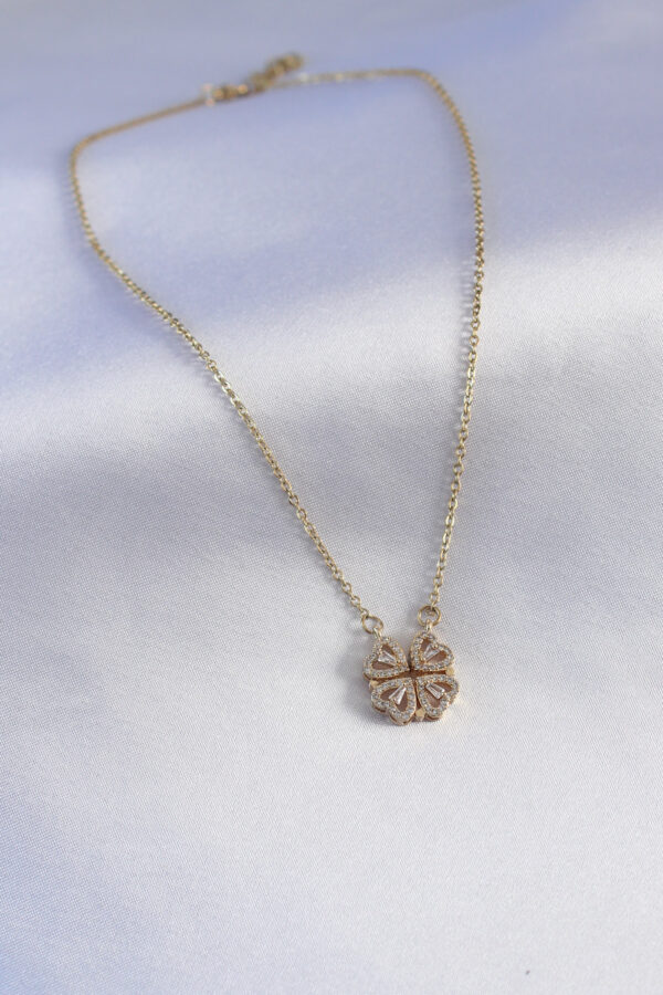 Tegan 316L Çelik Gold Renk Açılır Zirkon Taşlı Yonca Model Kadın Kolye TG27BKO7290