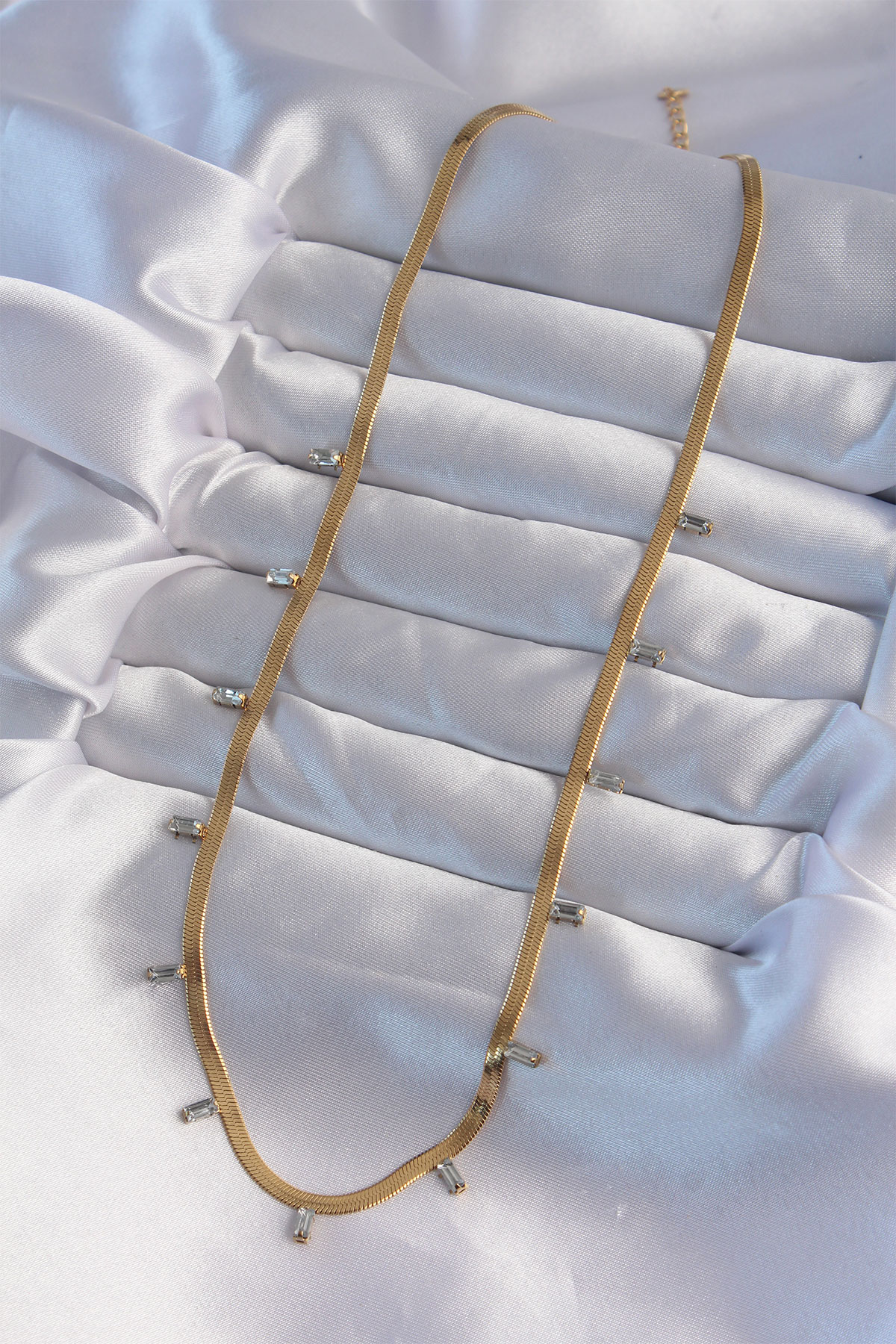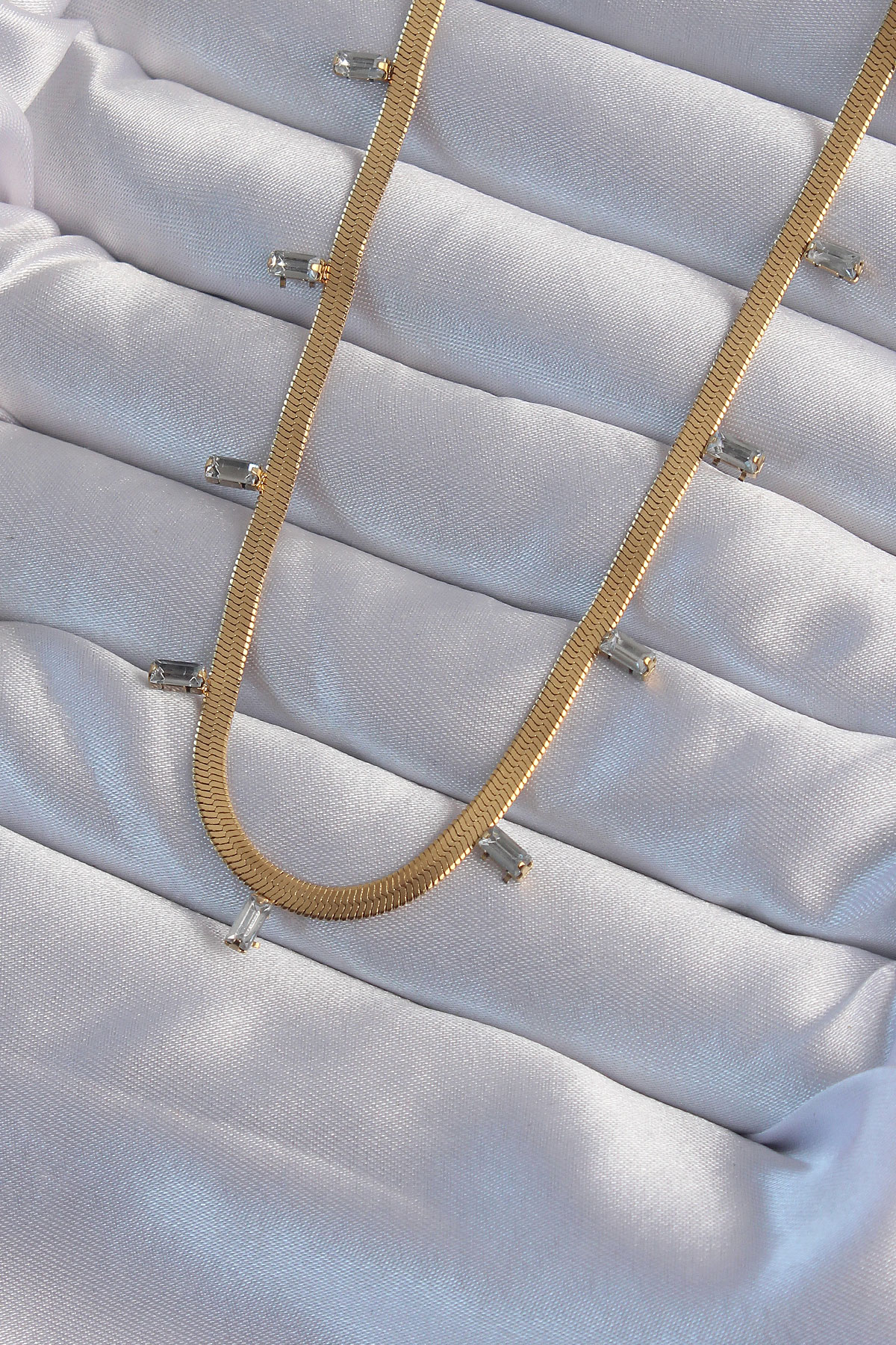 Tegan 316L Çelik Gold Renk Baget Taşlı İtalyan Zincir Kolye TG27BKO8994