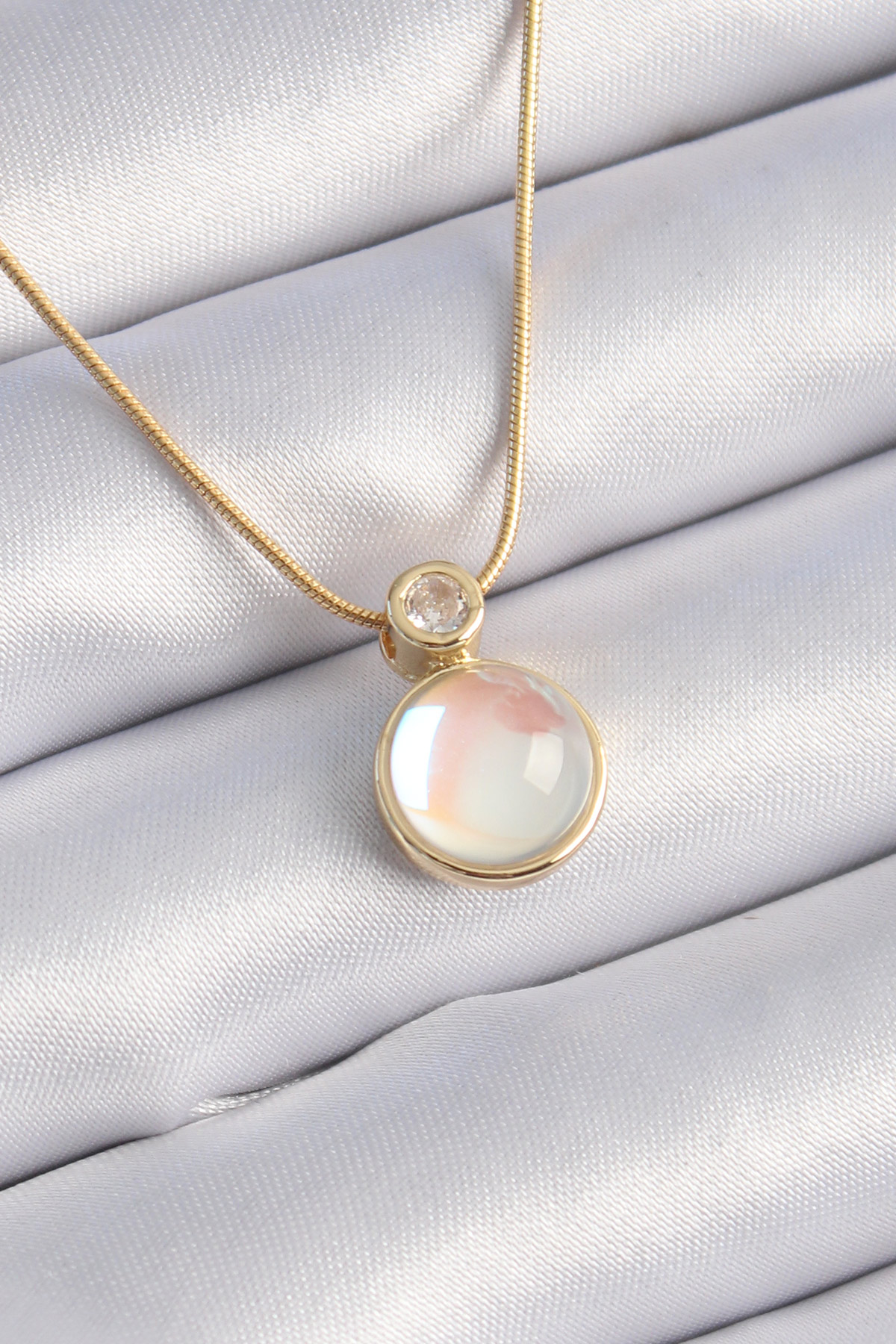 Tegan 316L Çelik Gold Renk Beyaz Sedefli Vintage Kadın Kolye TG27BKO9328