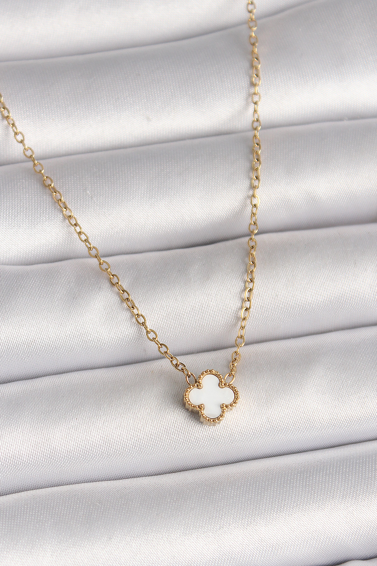 Tegan 316L Çelik Gold Renk Beyaz Yonca Model Kadın Kolye TG27BKO10019