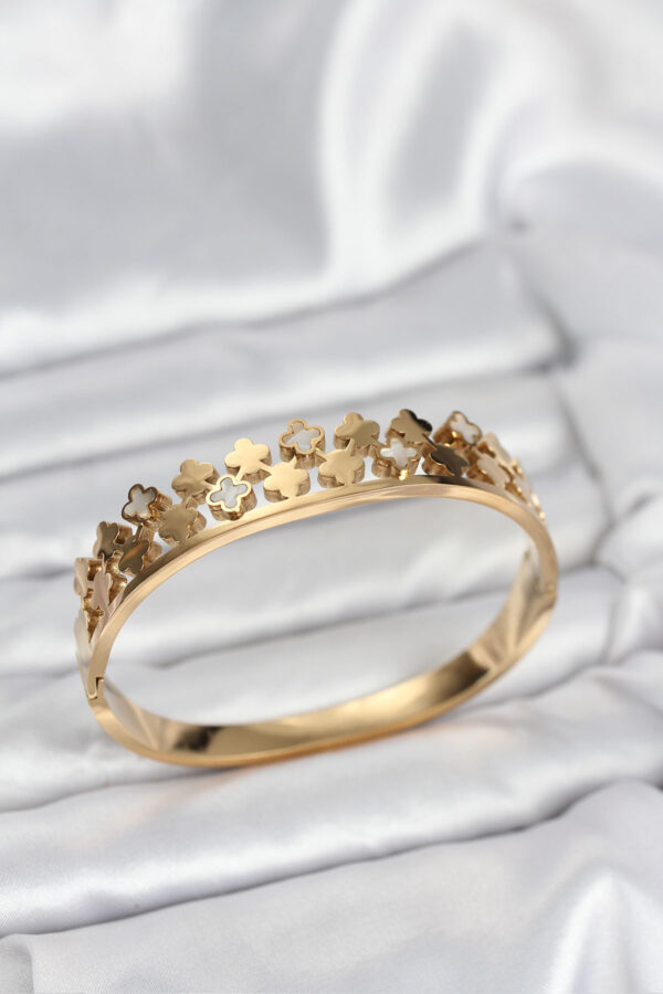 Tegan 316L Çelik Gold Renk Minimal Yoncalı Kadın Kelepçe Bileklik TG27BB8072