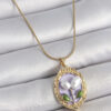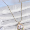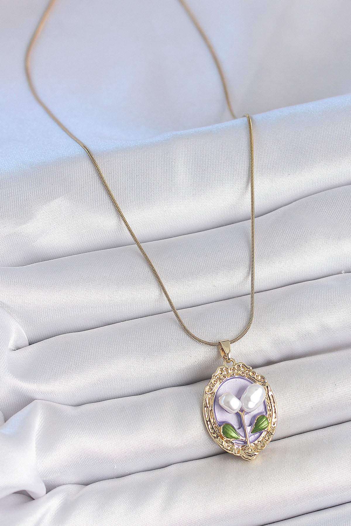 Tegan 316L Çelik Gold Renk Mor İncili Çiçek İşlemeli Portre Model Kadın Kolye TG27BKO10146