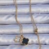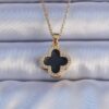 Tegan 316L Çelik Gold Renk Siyah Mineli Zirkon Taşlı Yonca Figürlü Kolye TG27BKO9198