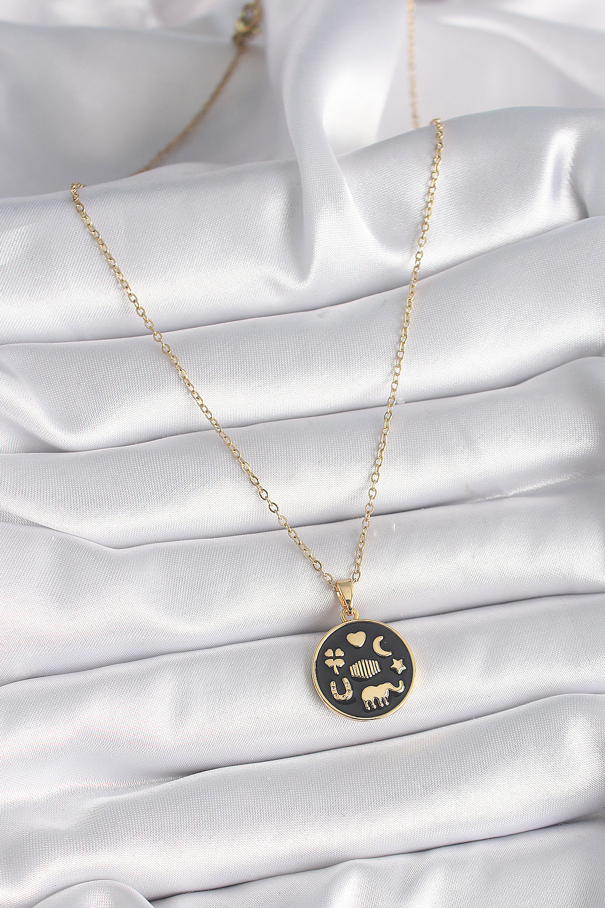 Tegan 316L Çelik Gold Renk Siyah Şans Kolyesi TG27BKO9547