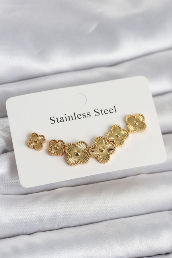 Tegan 316L Çelik Gold Renk Yonca Küpe Seti TG27BKP11699