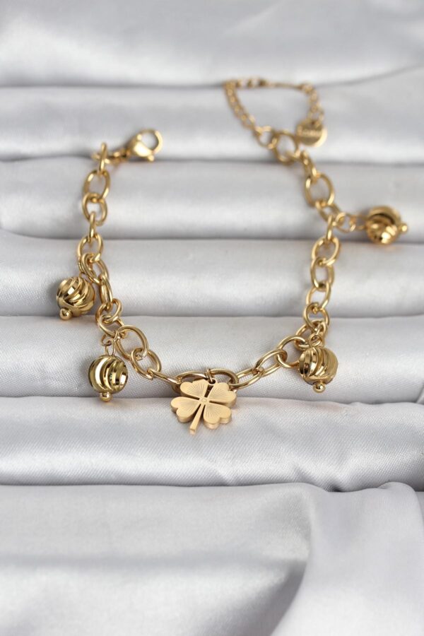 Tegan 316L Çelik Gold Renk Yonca ve Dorikalı Kadın Bileklik TG27BB8387