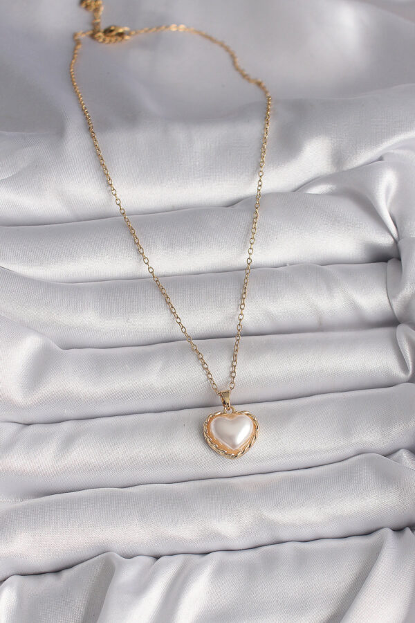 Tegan 316L Çelik Gold Renk Zincir 3D İnci Kalp Model Kadın Kolye TG27BKO9713