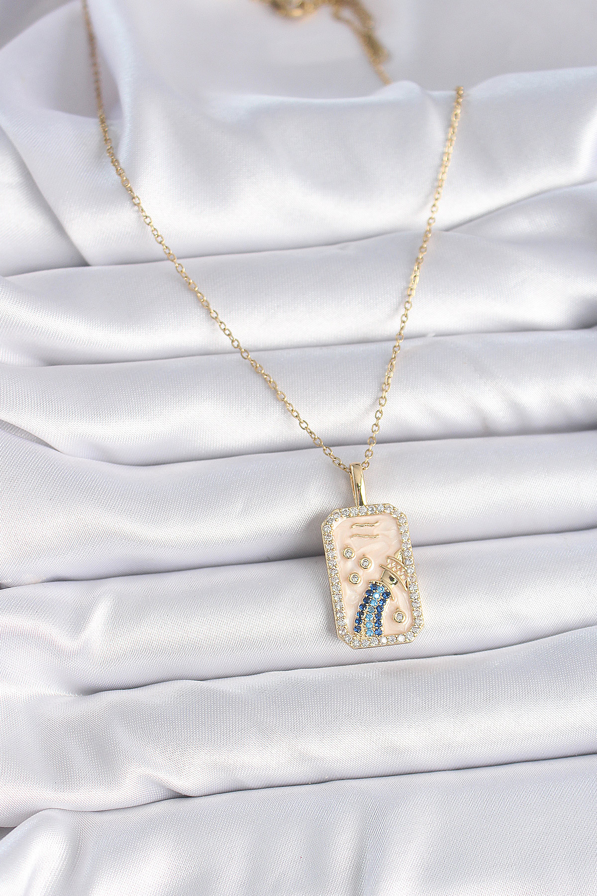 Tegan 316L Çelik Gold Renk Zincir Kova Burcu Zirkon Taşlı Kadın Kolye TG27BKO9458