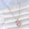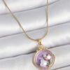 Tegan 316L Çelik Gold Renk Zincir Mor Mineli İncili Çiçek İşlemeli Portre Model Kadın Kolye TG27BKO10156