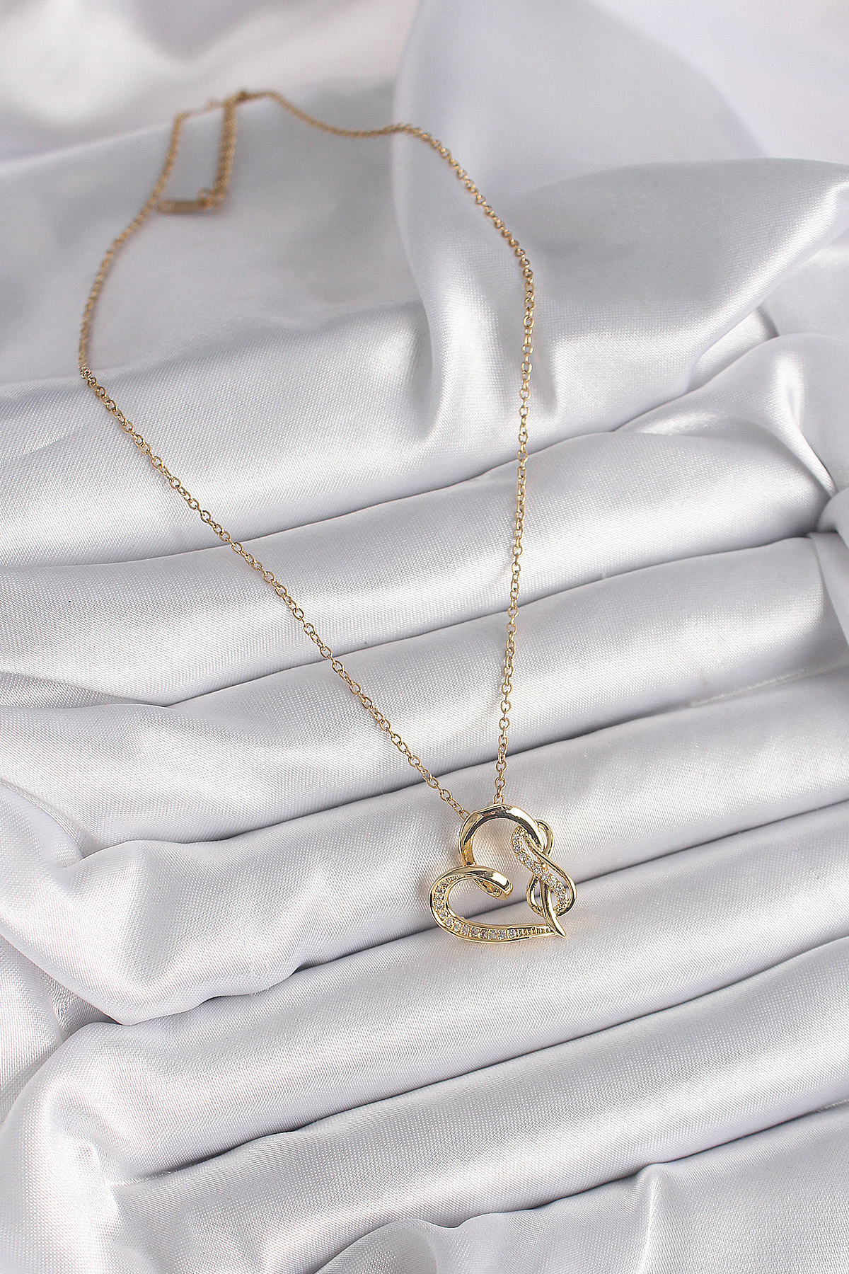 Tegan 316L Çelik Gold Renk Zincir Zirkon Taş Detaylı Kalp Model Sonsuzluk Detay Kadın Kolye TG27BKO9583