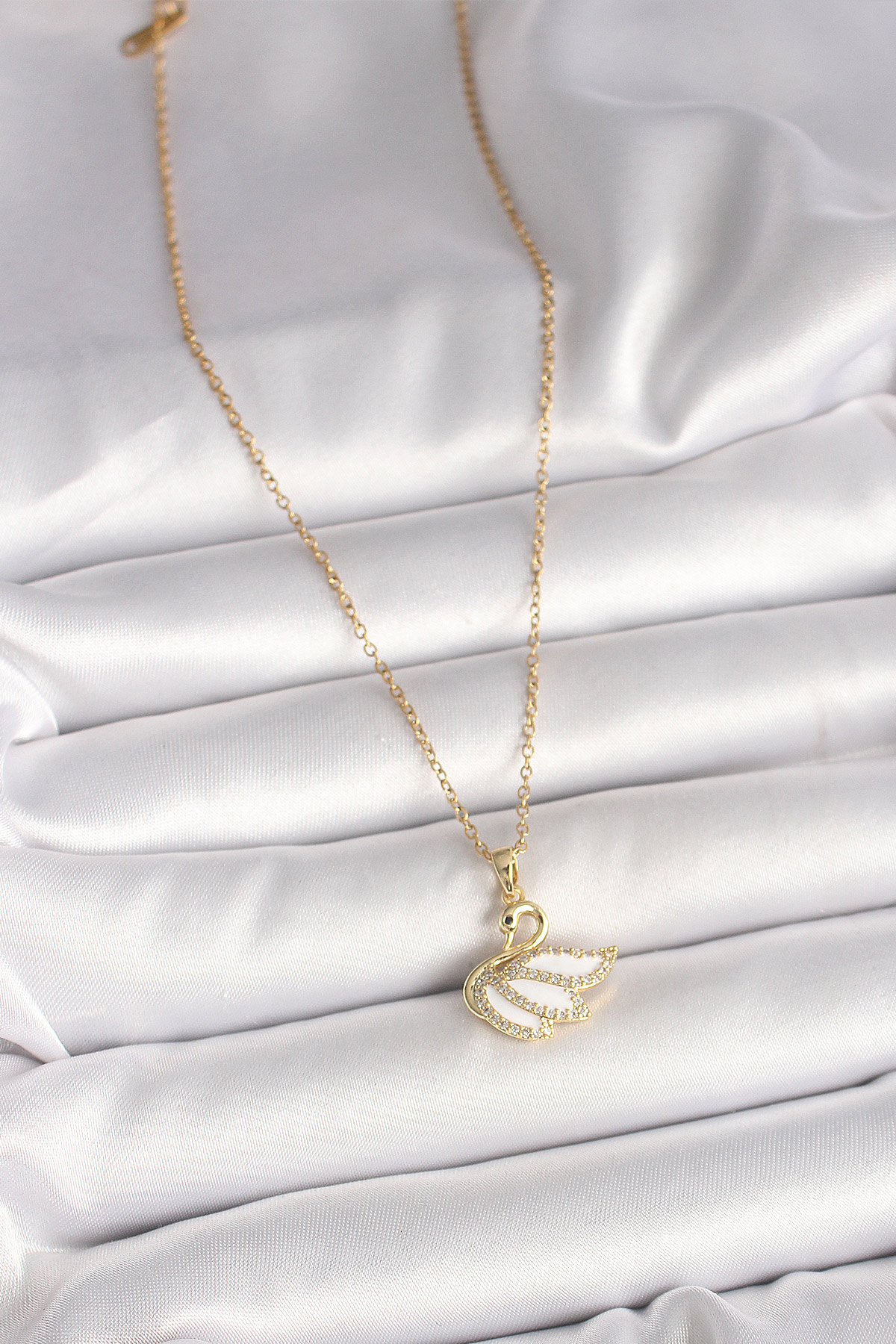 Tegan 316L Çelik Gold Renk Zincir Zirkon Taşlı Kuğu Model Kadın Kolye TG27BKO9996