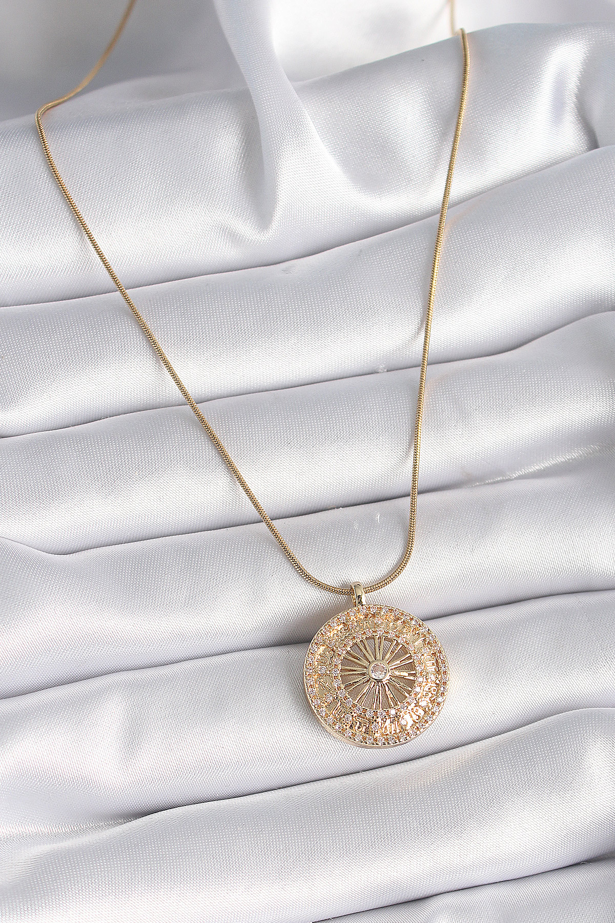 Tegan 316L Çelik Gold Renk Zirkon Taşlı 12 Burç Madalyon Model Kadın Kolye TG27BKO9542