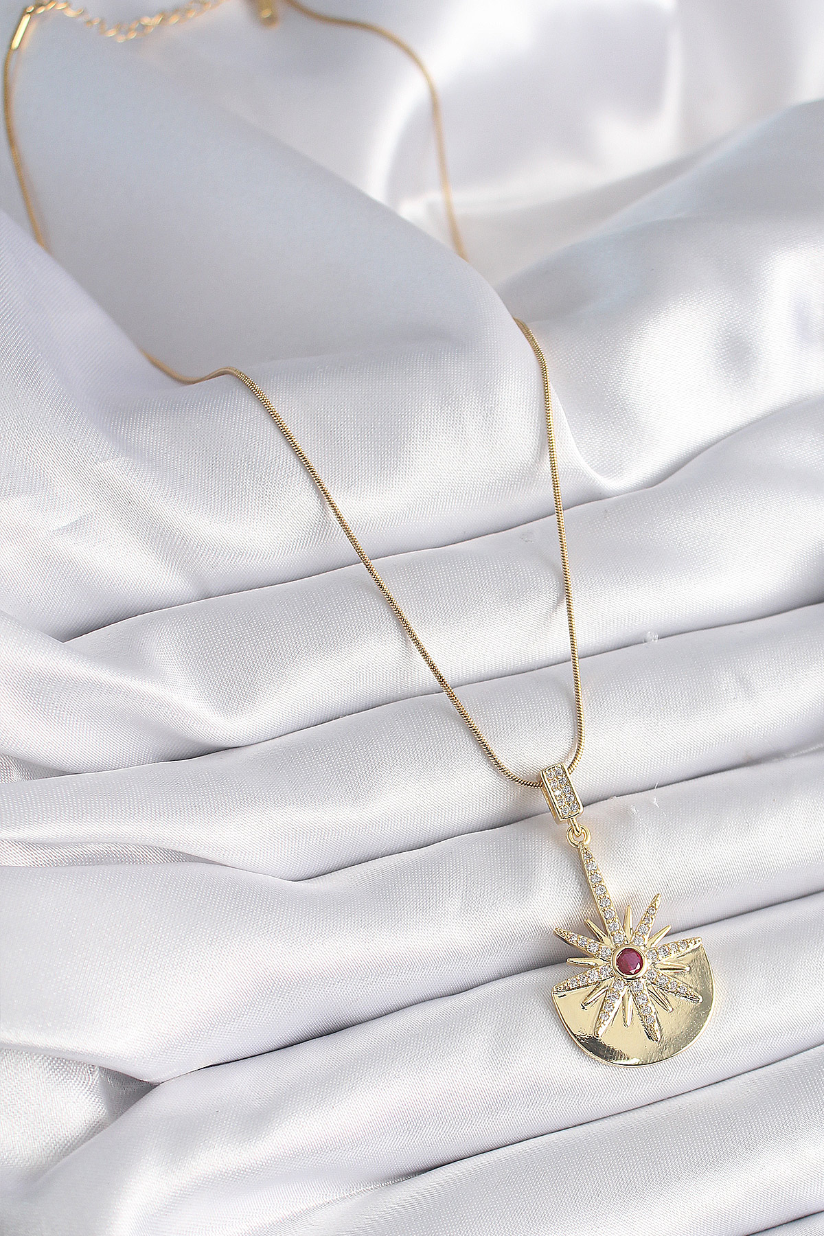Tegan 316L Çelik Gold Renk Zirkon Taşlı Yıldız Model Kadın Kolye TG27BKO9518