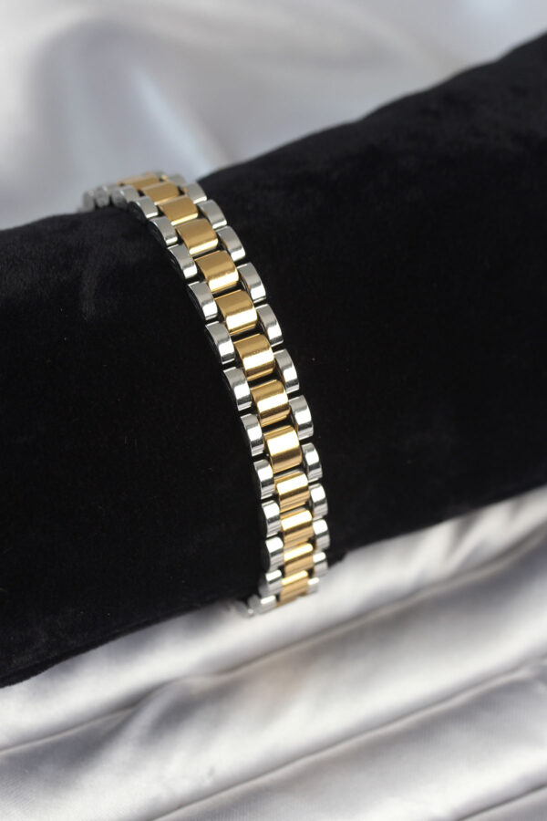 Tegan 316L Çelik Gold ve Gümüş Renk 9 mm Kalınlık Erkek Bileklik TG27EB3769
