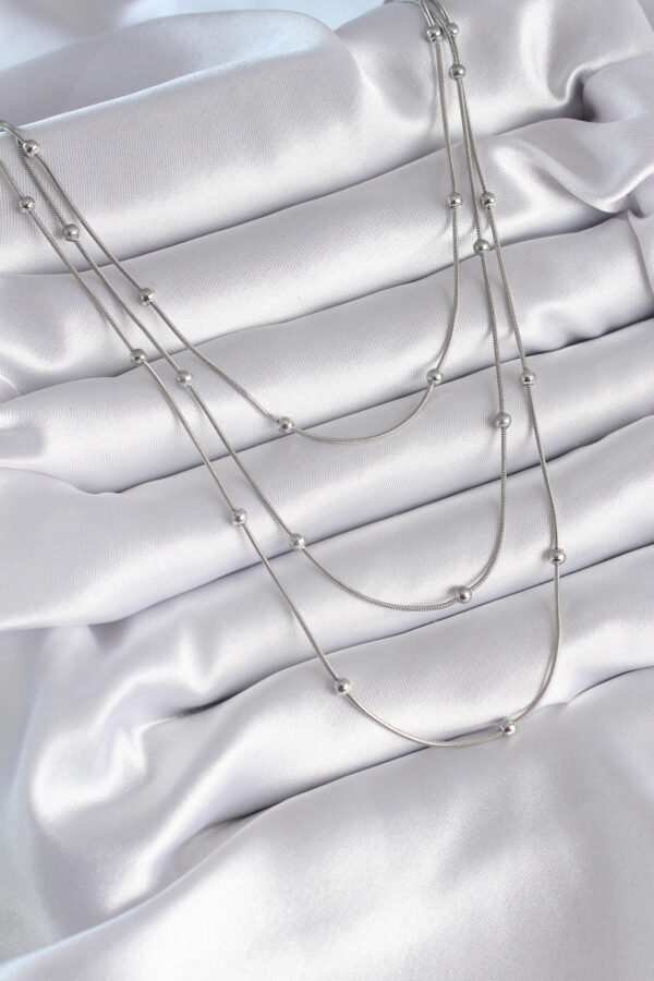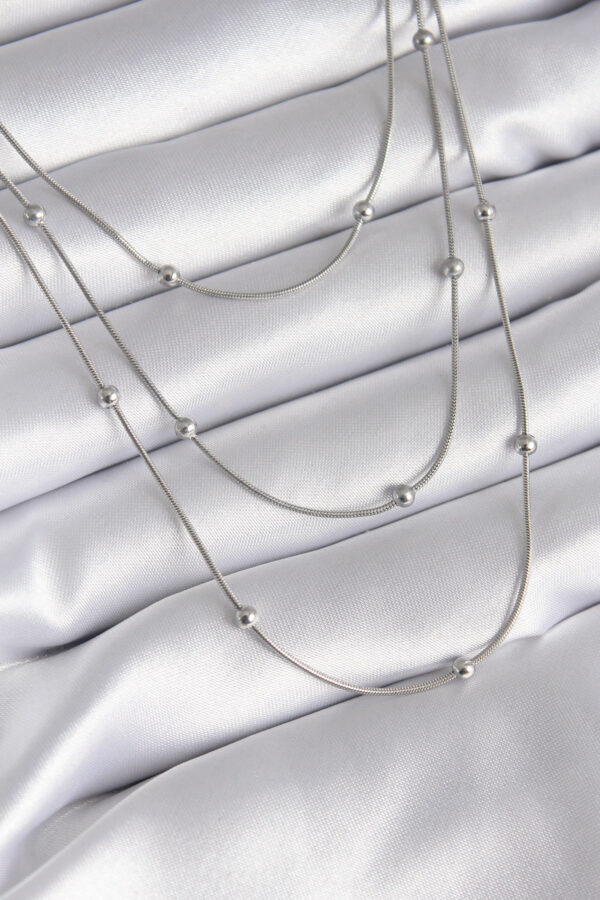Tegan 316L Çelik Gümüş Renk 3’lü Topçuk Detay Kadın Kolye TG27BKO8313