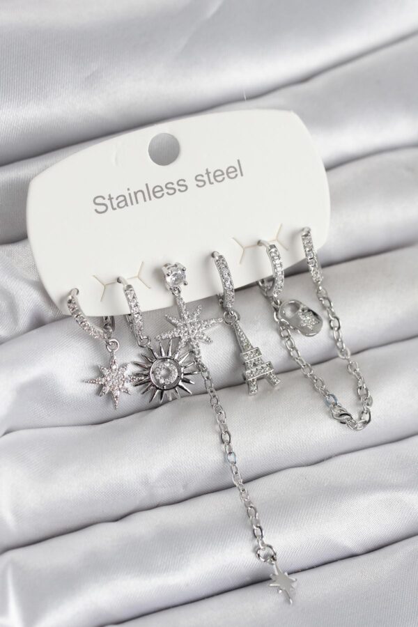 Tegan 316L Çelik Gümüş Renk 6’lı Set Charmlı Kadın Küpe TG27BKP11750