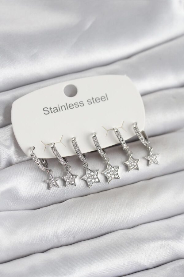 Tegan 316L Çelik Gümüş Renk 6’lı Set Yıldız Model Kadın Küpe TG27BKP11752
