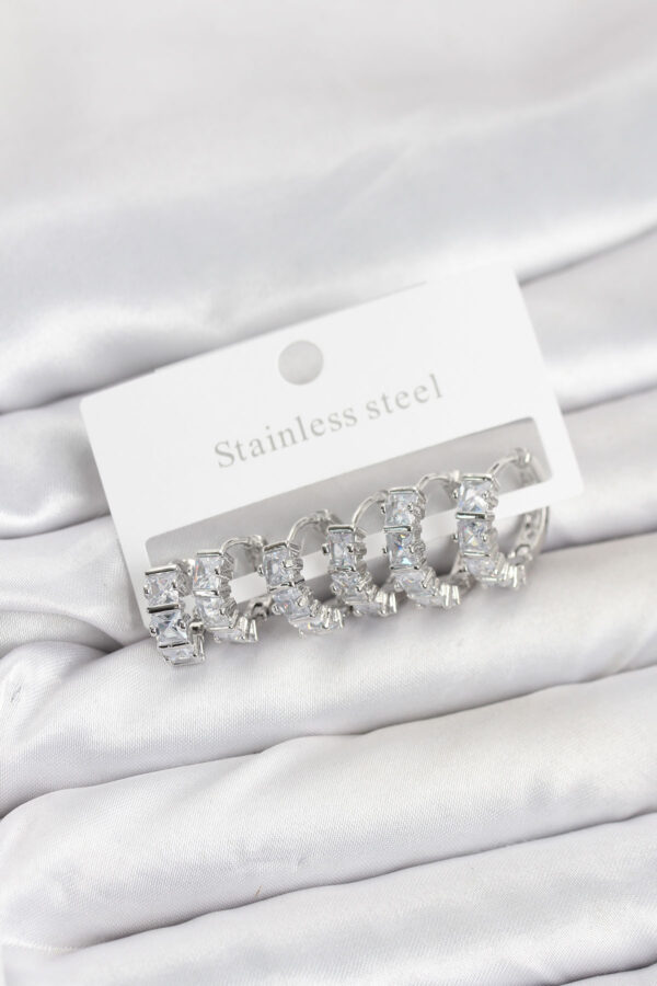 Tegan 316L Çelik Gümüş Renk Baget Zirkon Taşlı Halka Küpe Seti TG27BKP11529