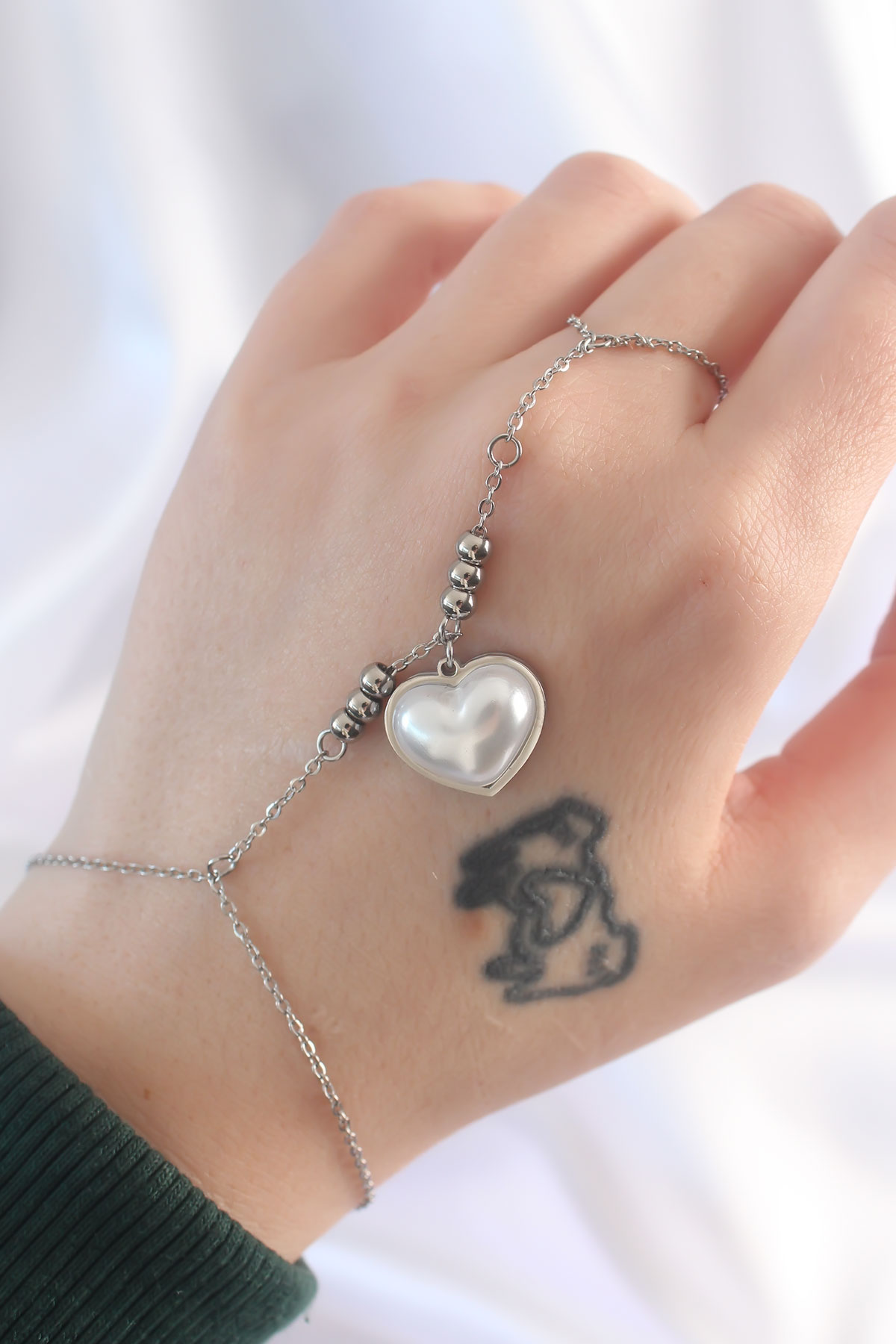 Tegan 316L Çelik Gümüş Renk Beyaz Bubble Kalp Tasarımlı Şahmeran TG27SN575
