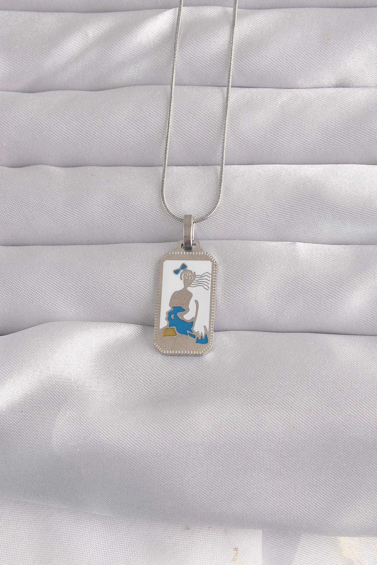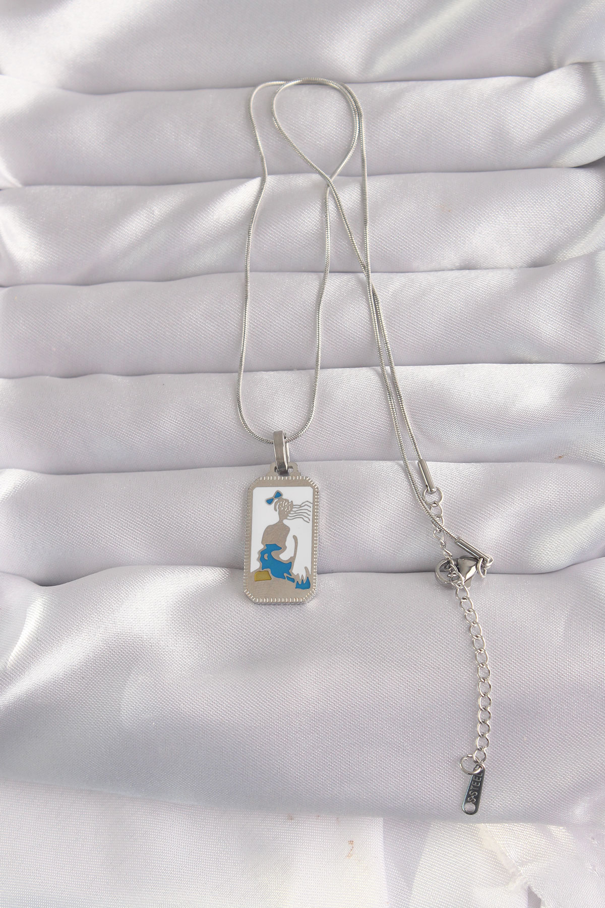 Tegan 316L Çelik Gümüş Renk Beyaz Mineli Kız Figür Tarot Kolye TG27BKO9049