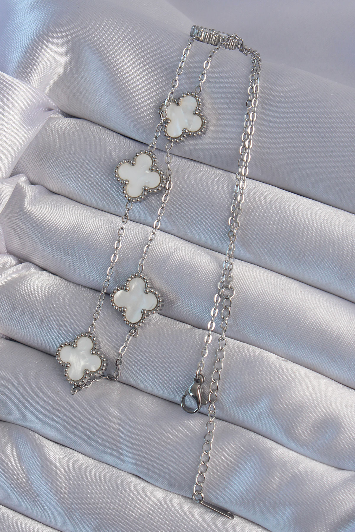 Tegan 316L Çelik Gümüş Renk Beyaz Sedefli Yonca Kolye TG27BKO8995