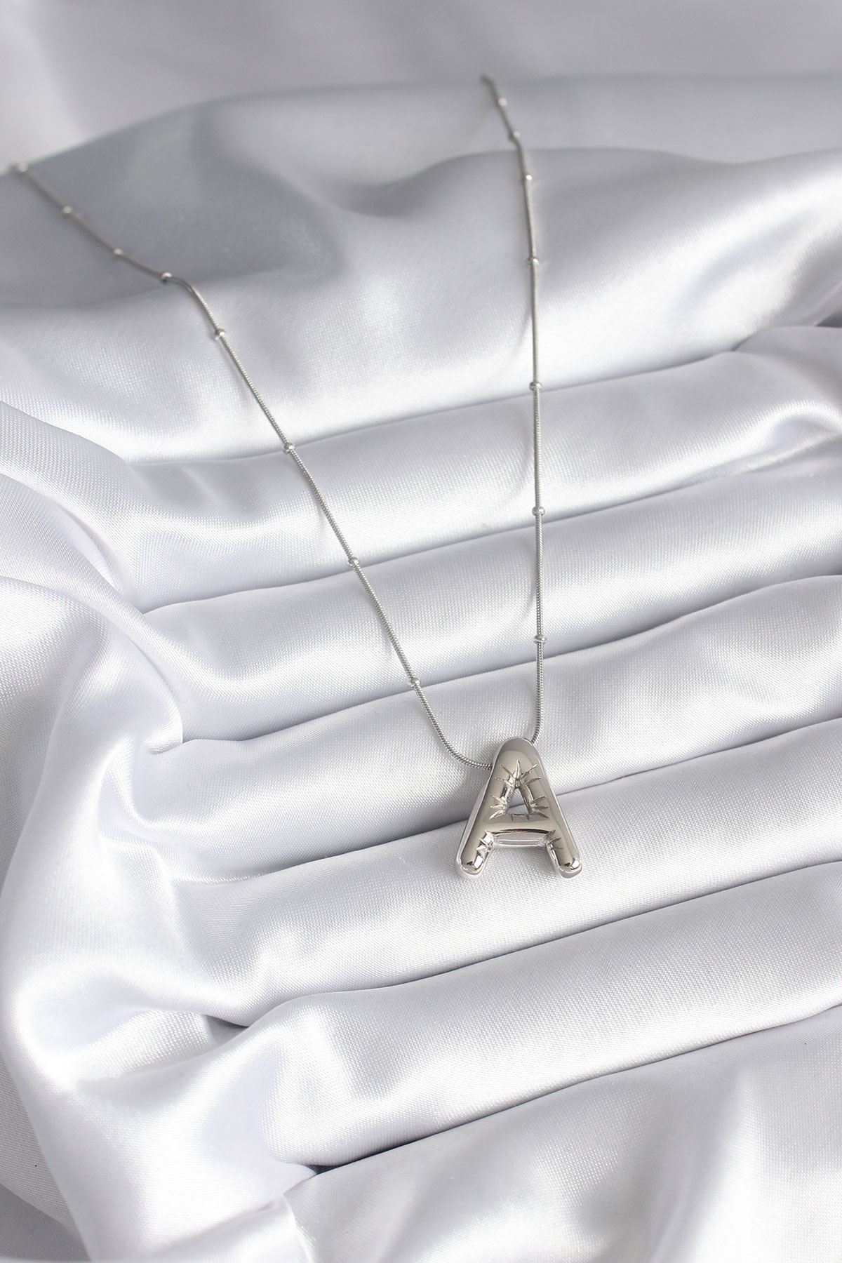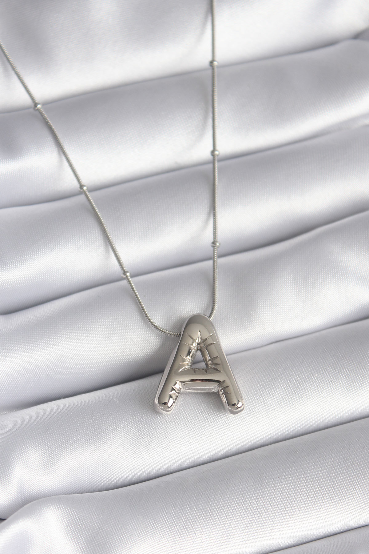 Tegan 316L Çelik Gümüş Renk Bubble “A” Harf Model Kadın Kolye TG27BKO8308