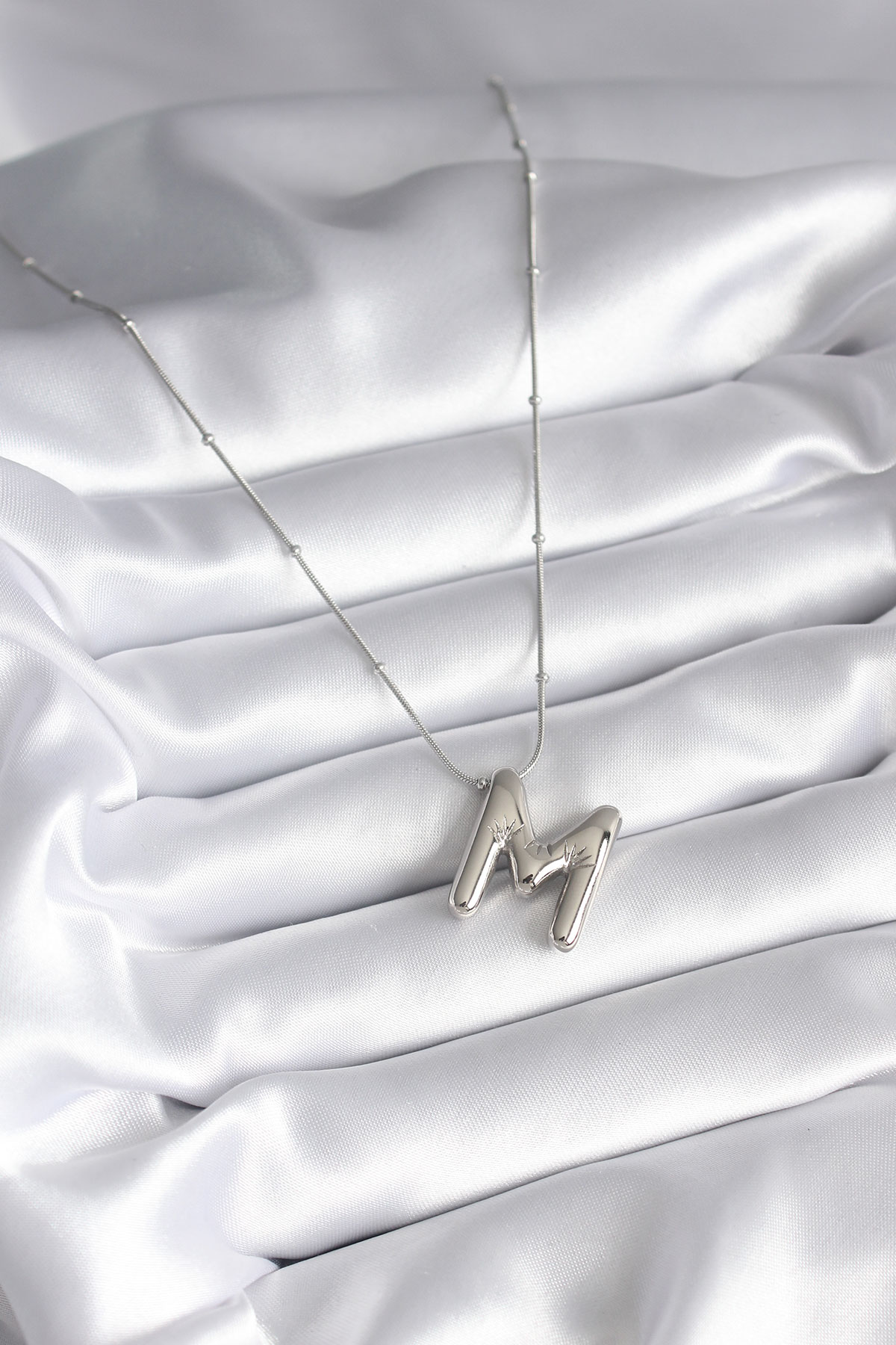 Tegan 316L Çelik Gümüş Renk Bubble “M” Harf Model Kadın Kolye TG27BKO8307