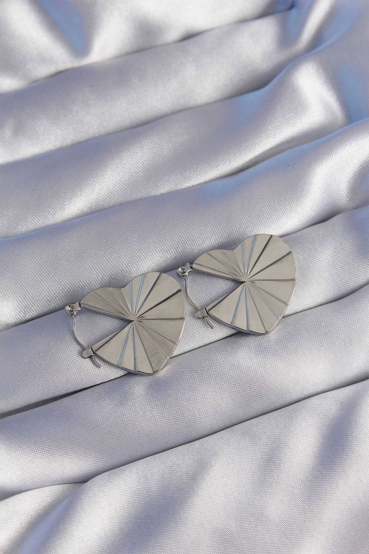 Tegan 316L Çelik Gümüş Renk Çizgili Plaka Tasarımlı Kalp Küpe TG27BKP9041