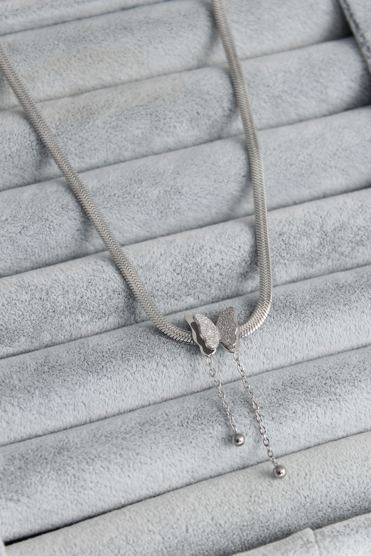 Tegan 316L Çelik Gümüş Renk İtalyan Zincir Model Simli Kelebek Figür Kadın Kolye TG27BKO7676