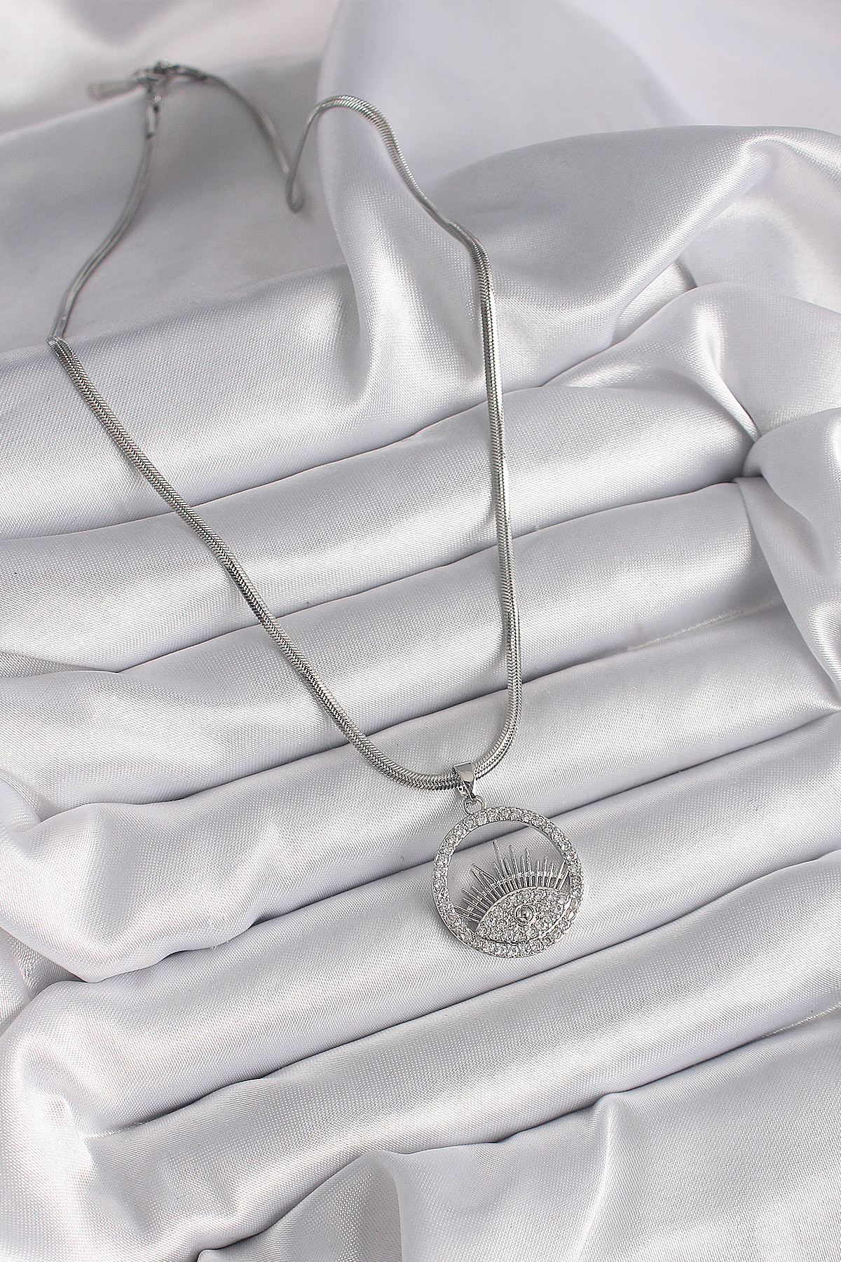 Tegan 316L Çelik Gümüş Renk İtalyan Zincir Zirkon Taşlı Göz Model Kadın Kolye TG27BKO9598