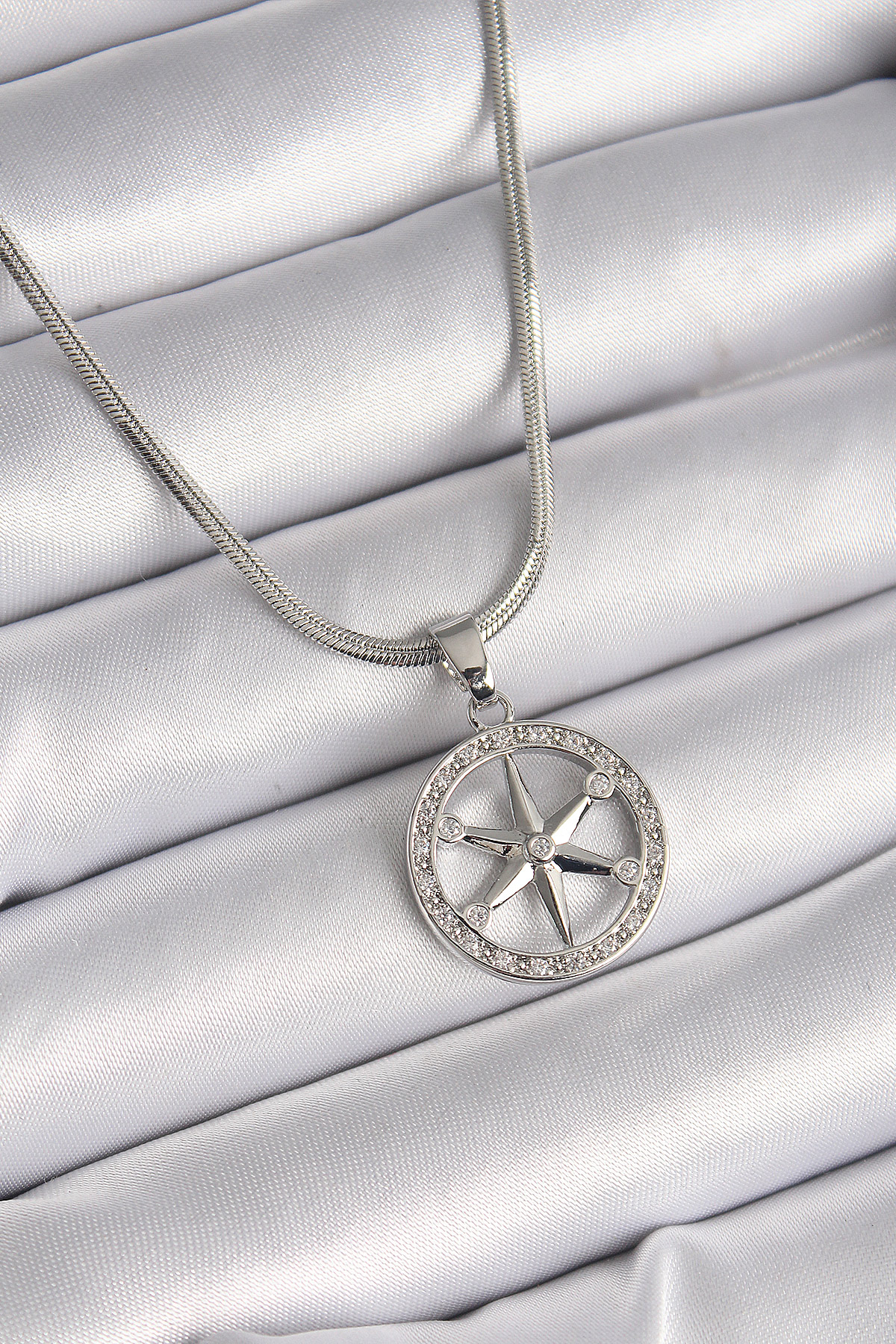 Tegan 316L Çelik Gümüş Renk İtalyan Zincir Zirkon Taşlı Kutup Yıldız Model Kadın Kolye TG27BKO9594
