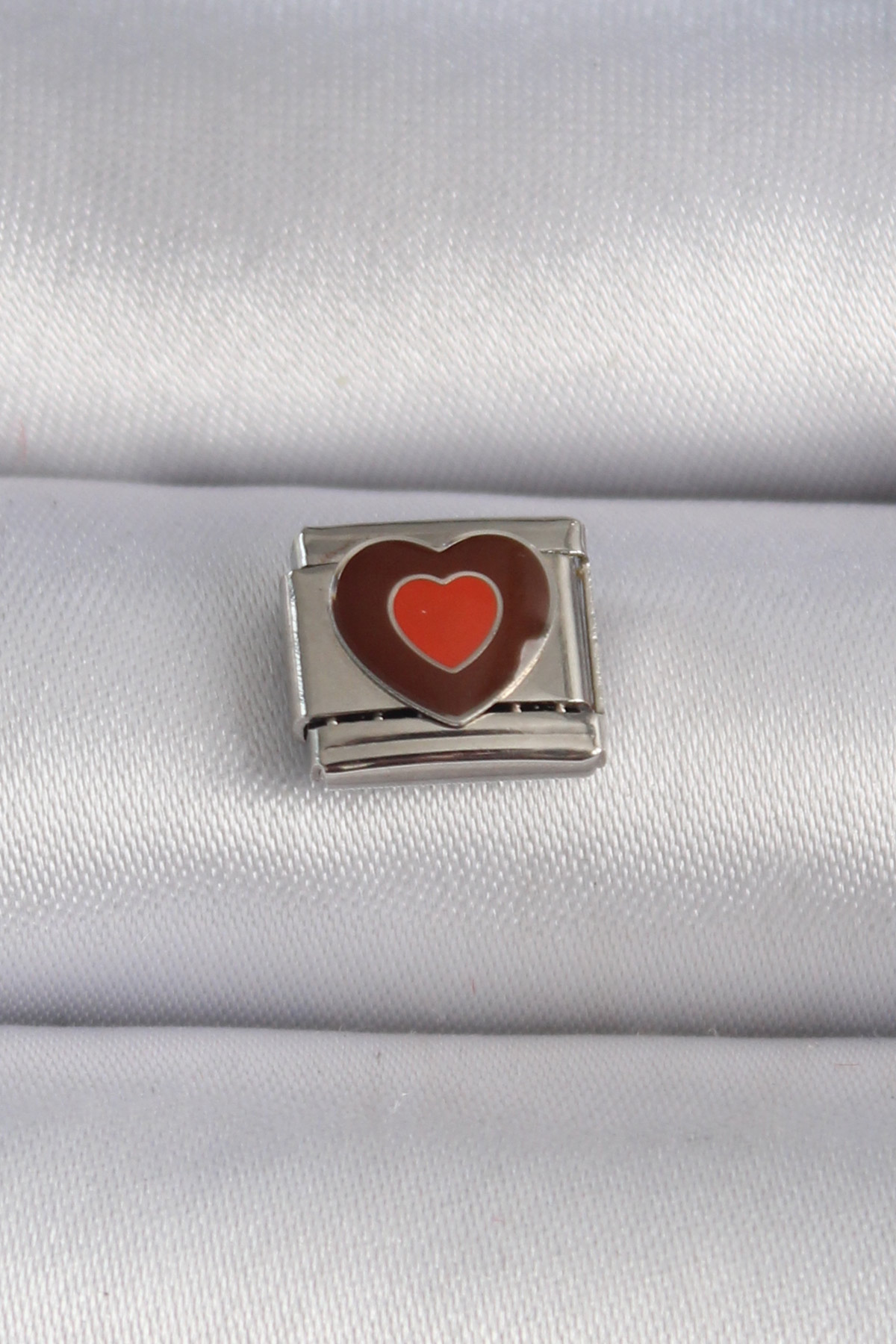 Tegan 316L Çelik Gümüş Renk Kahverengi Kalp İşlemeli Nomination Charm TG27BC1018