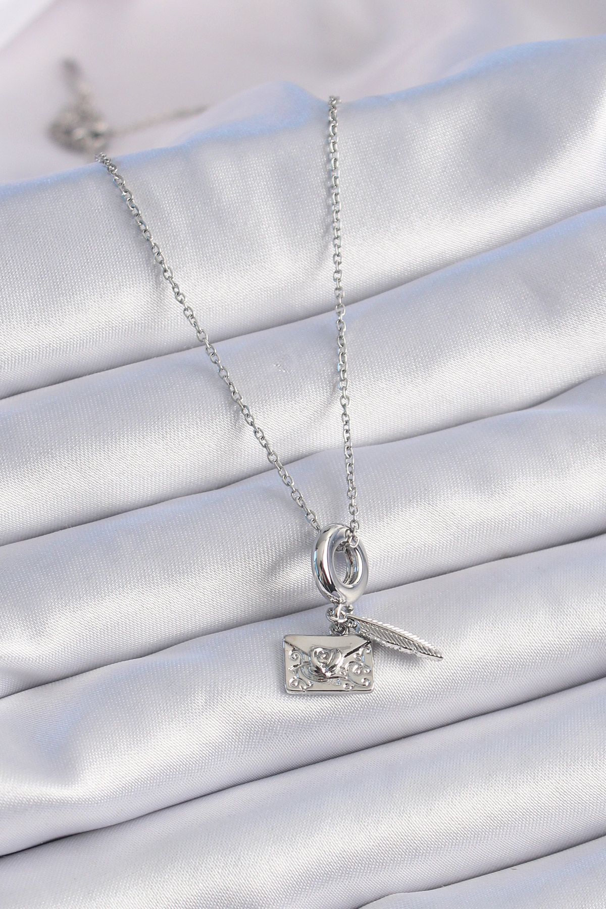 Tegan 316L Çelik Gümüş Renk Kalp Detay Mektup Figür Charm Model Kadın Kolye TG27BKO9313