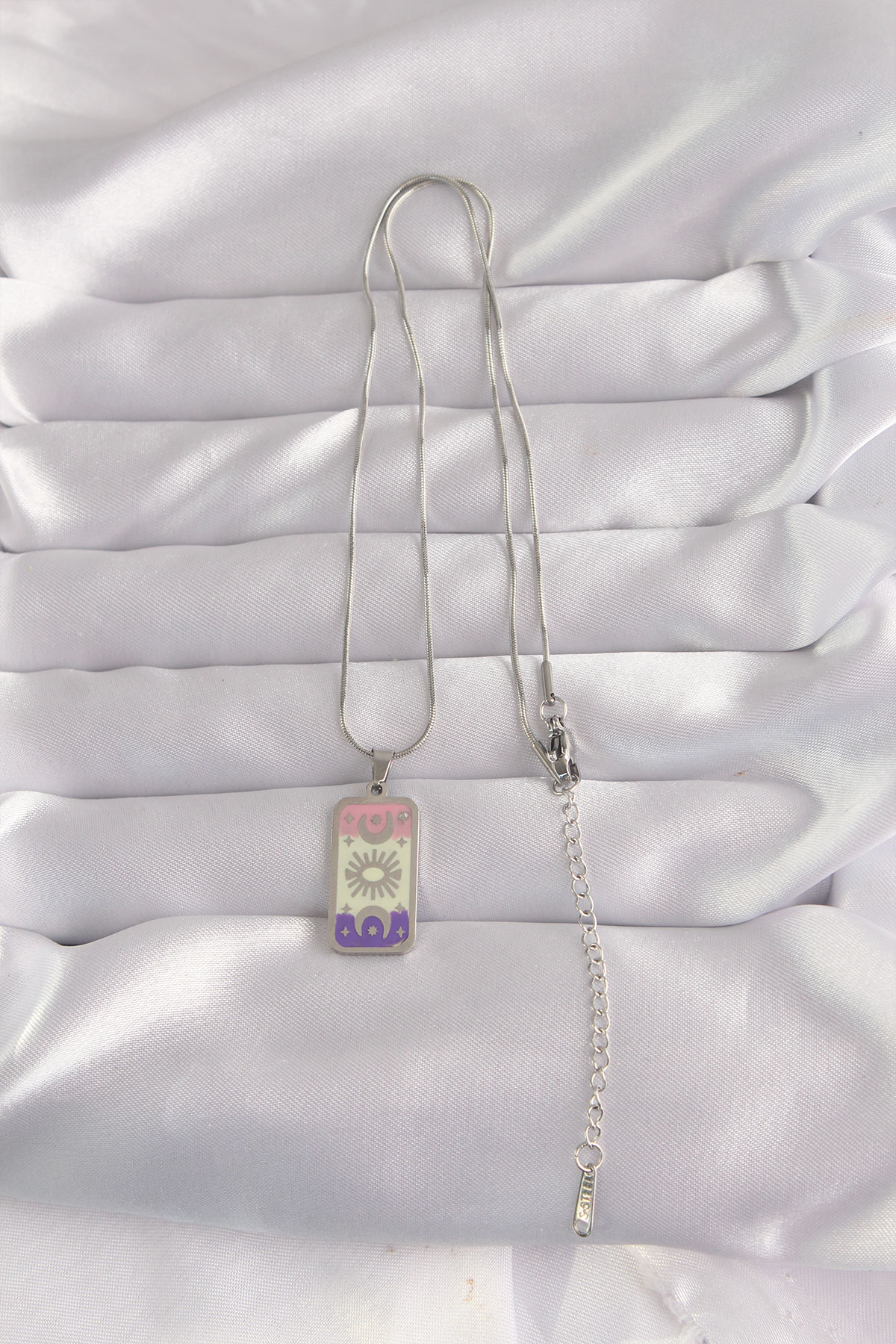 Tegan 316L Çelik Gümüş Renk Karışık Mineli Ay Figür Tarot Kolye TG27BKO9044