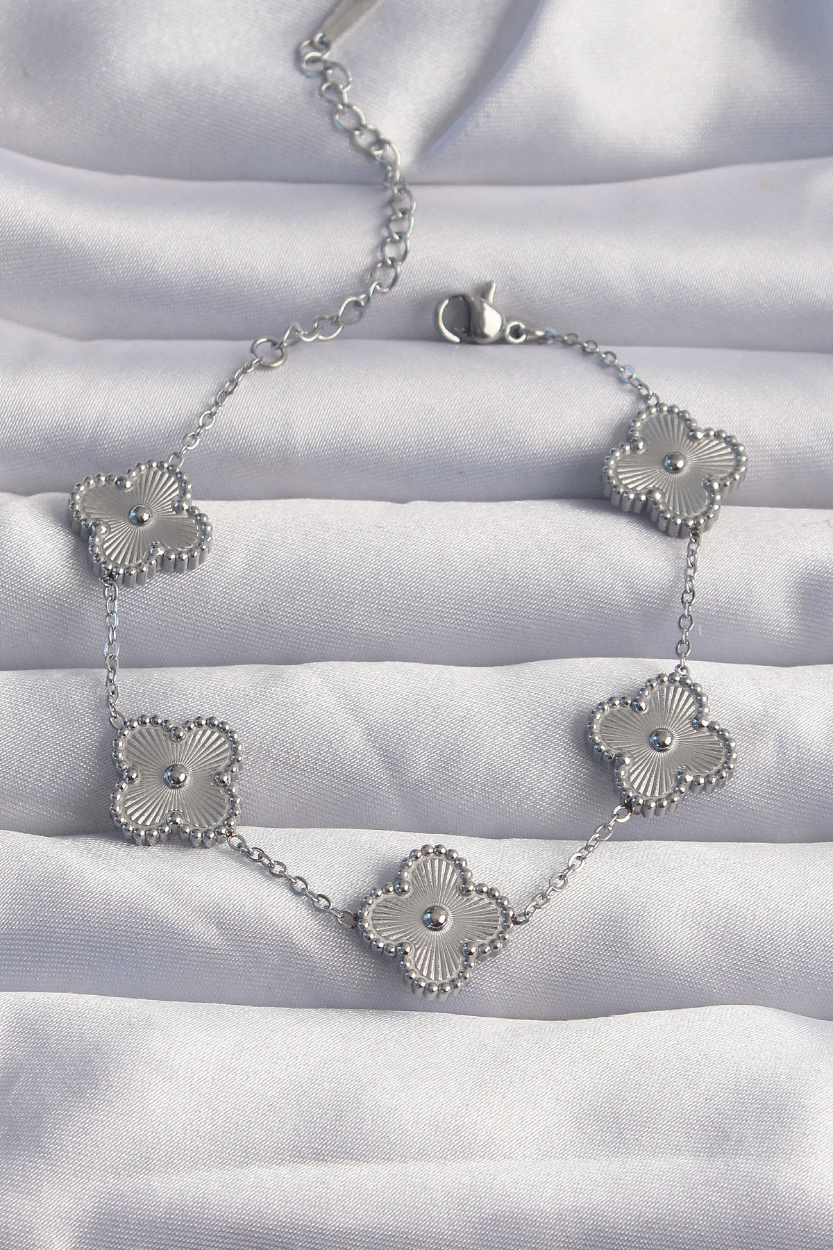 Tegan 316L Çelik Gümüş Renk Motifli Yonca Bileklik TG27BB6269