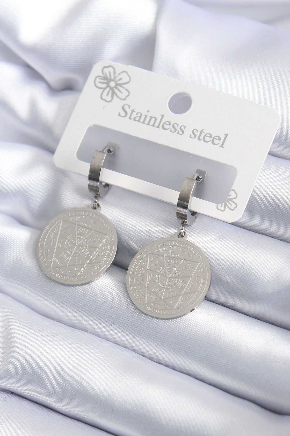 Tegan 316L Çelik Gümüş Renk Pentagram İşleme Model Kadın Küpe TG27BKP7924