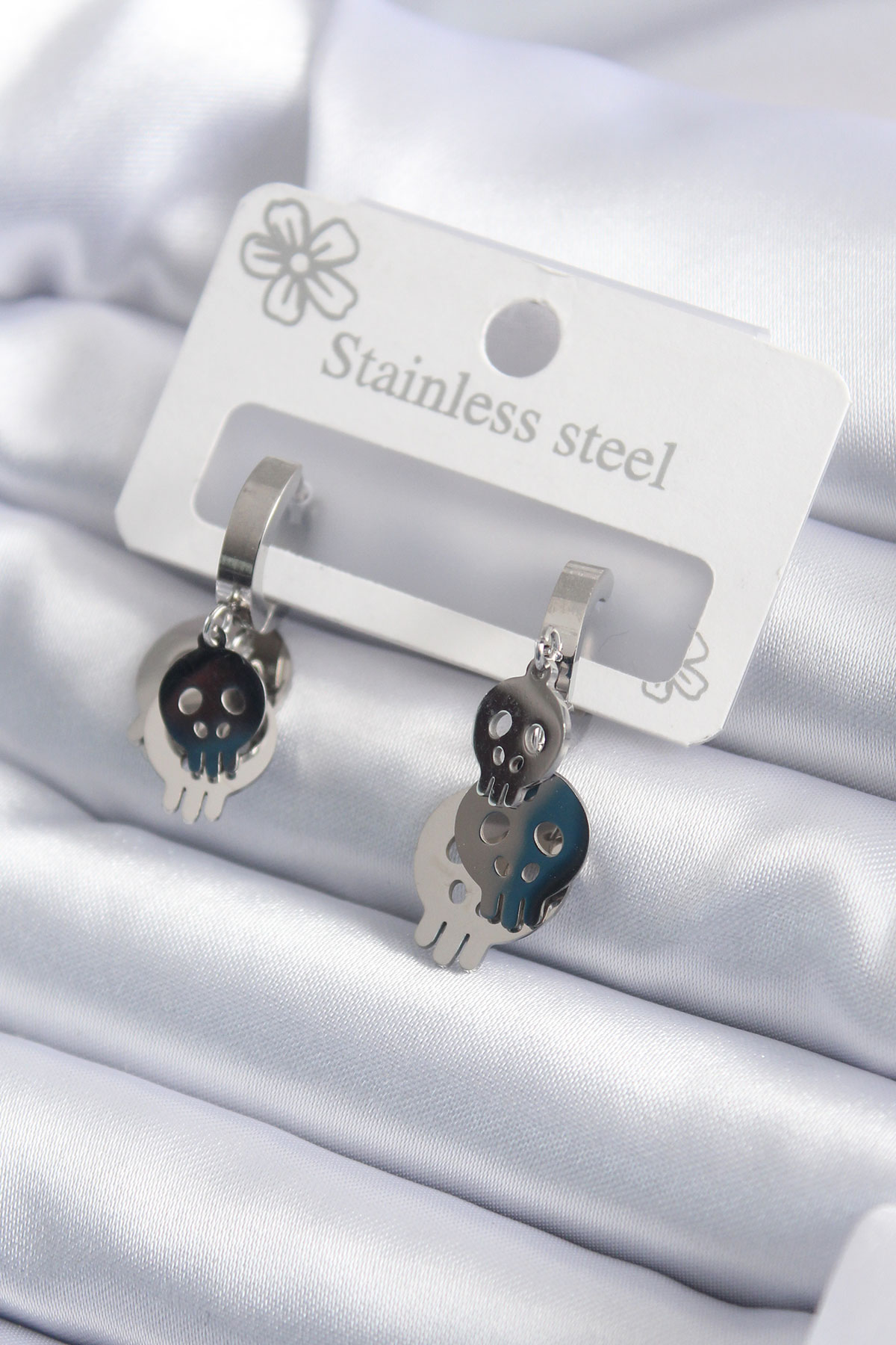 Tegan 316L Çelik Gümüş Renk Sallantı Kuru Kafa Model Kadın Küpe TG27BKP7922