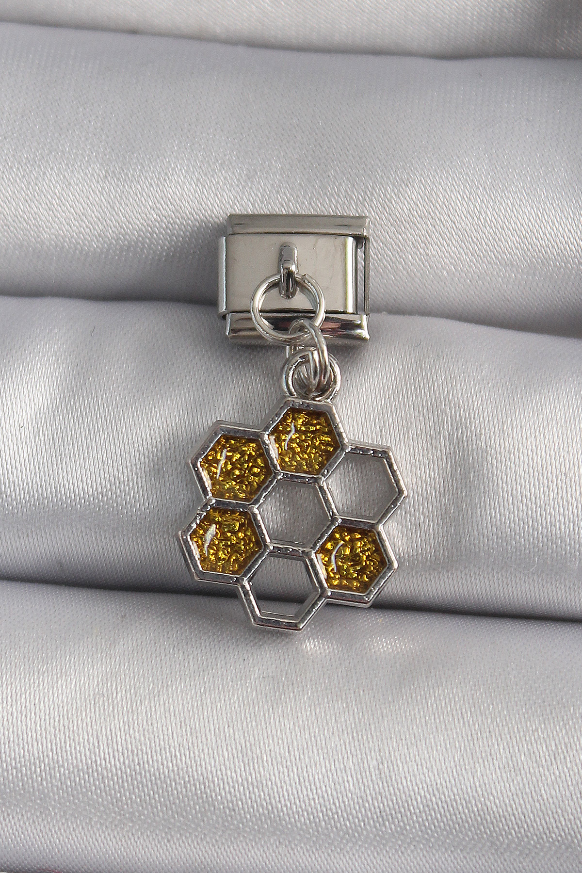 Tegan 316L Çelik Gümüş Renk Sallantı Simli Bal Beteği Model Nomination Charm TG27BC1158