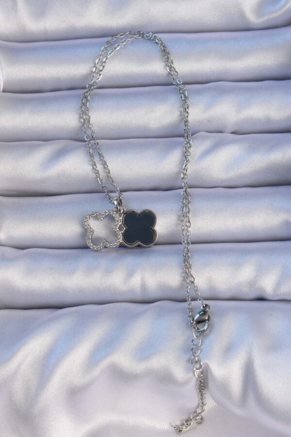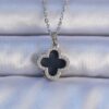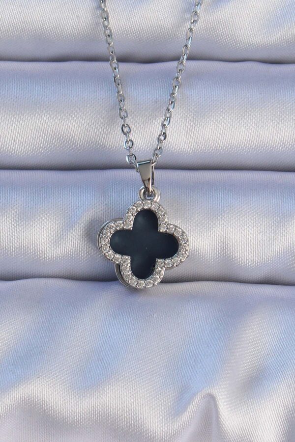 Tegan 316L Çelik Gümüş Renk Siyah Mineli Zirkon Taşlı Yonca Figürlü Kolye TG27BKO9197