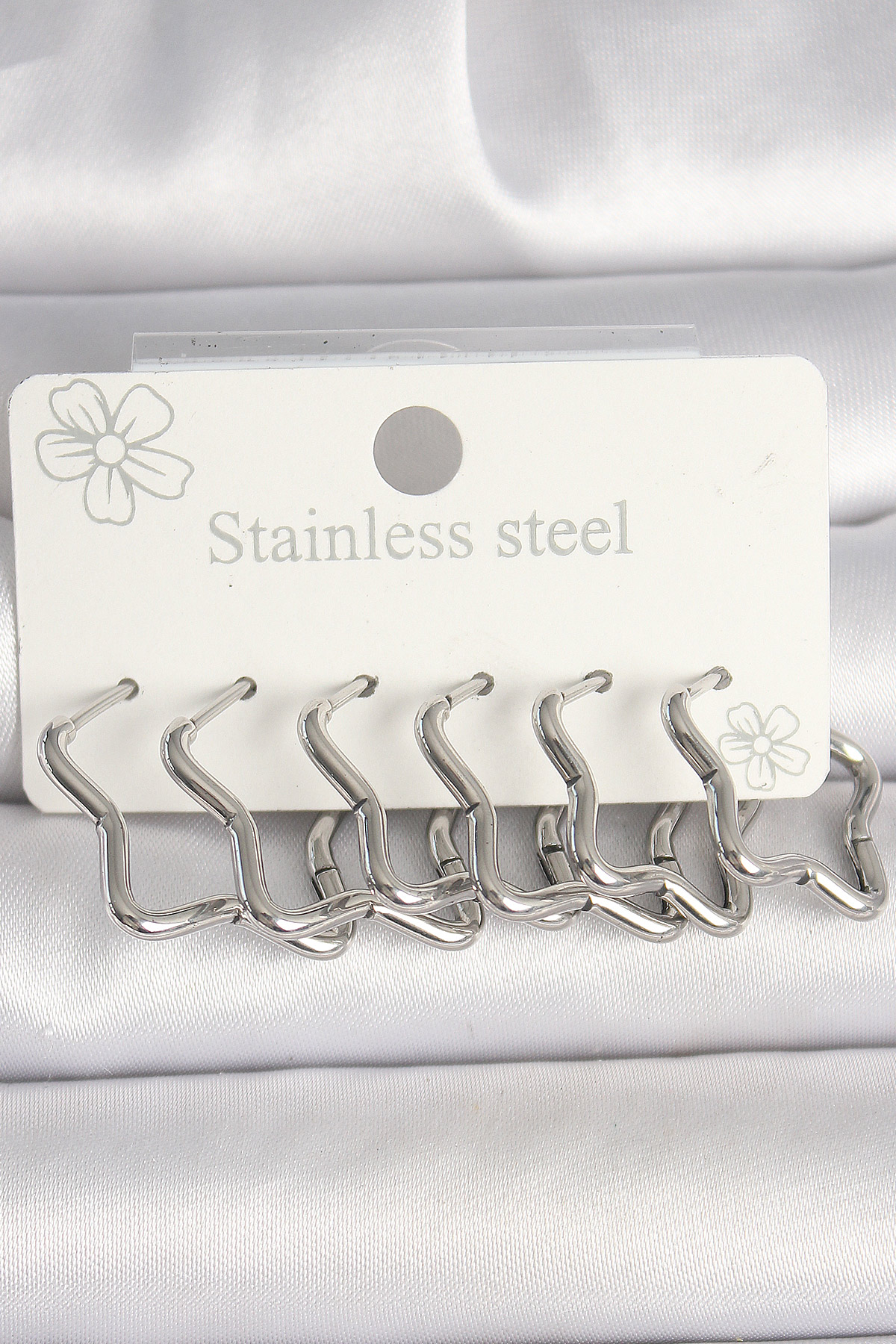 Tegan 316L Çelik Gümüş Renk Yıldız Model Kadın Küpe Seti TG27BKP10351