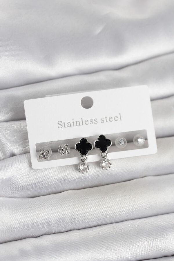 Tegan 316L Çelik Gümüş Renk Yonca Detaylı Kadın Küpe Seti TG27BKP11694