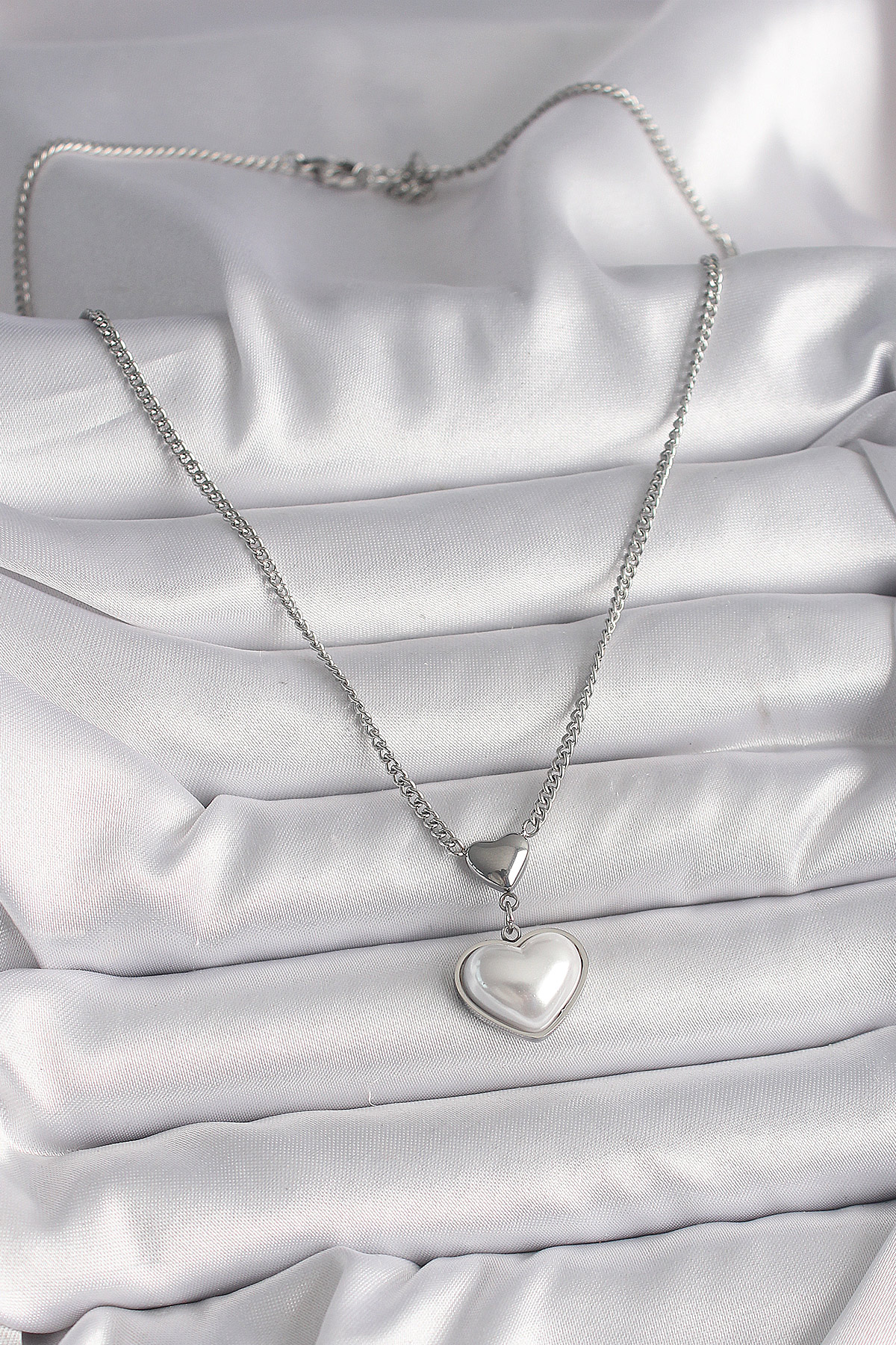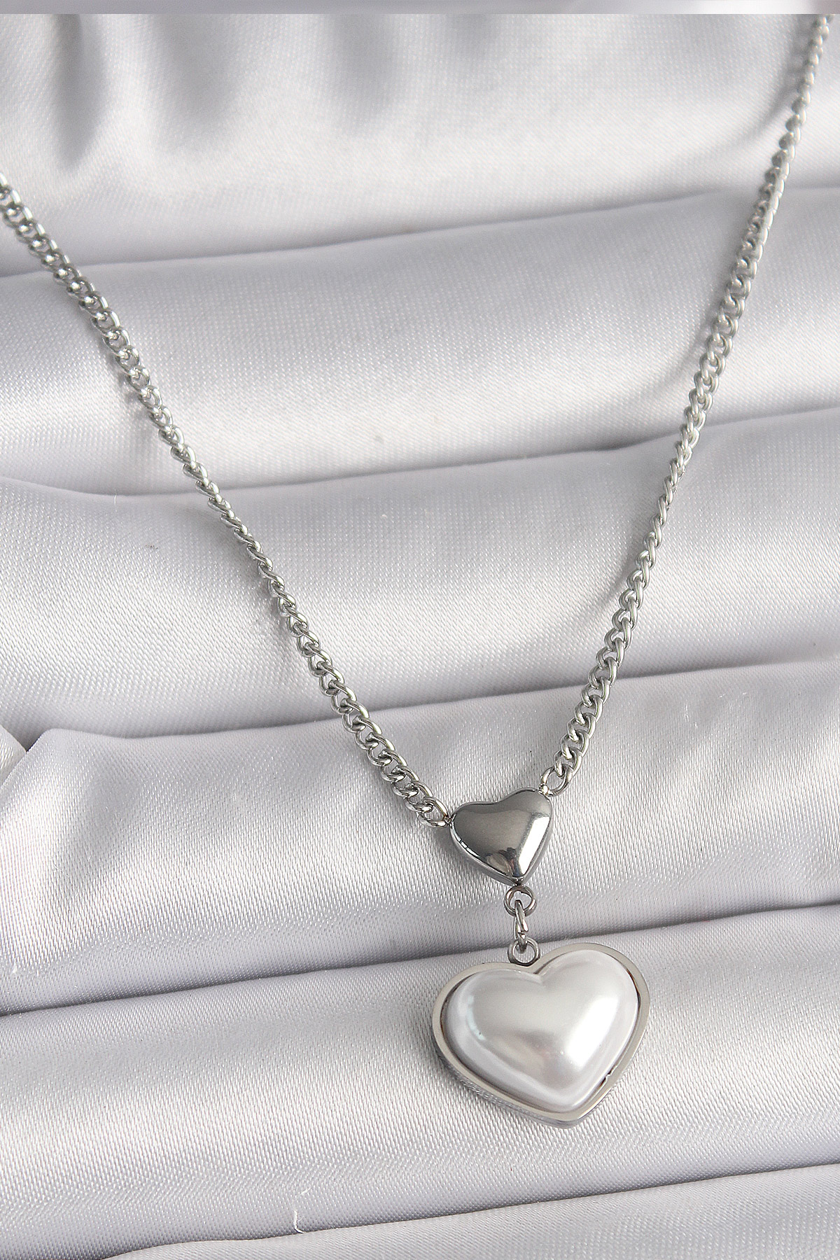 Tegan 316L Çelik Gümüş Renk Zincir 3D Kalp Model Kadın Kolye TG27BKO9771