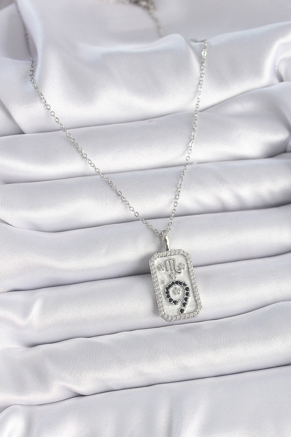Tegan 316L Çelik Gümüş Renk Zincir Akrep Burcu Zirkon Taşlı Kadın Kolye TG27BKO9453