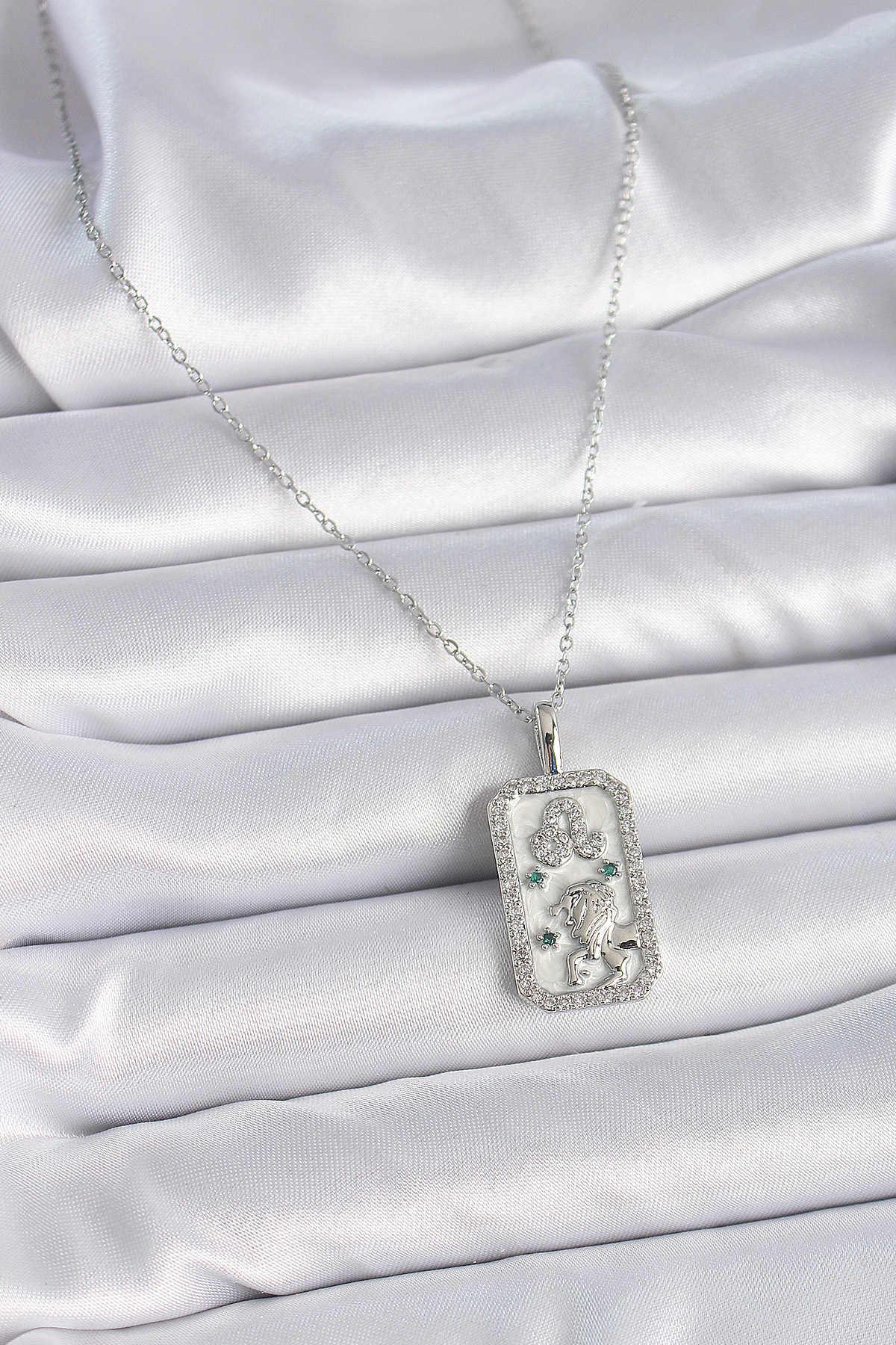 Tegan 316L Çelik Gümüş Renk Zincir Aslan Burcu Zirkon Taşlı Kadın Kolye TG27BKO9451